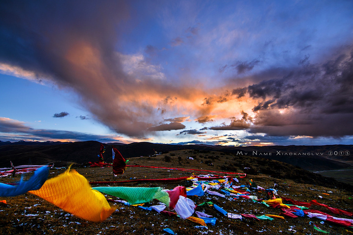 跑到全是经幡的山顶看日落,一个人也没有,只有风呼呼的刮着经幡哗哗的响 听说往下走就是天葬台 虽然我不信神也不怕鬼,有时候经幡啪啪响得比较厉害时,心里不免透着凉 三两只狗狗从山下打闹着跑上来,经过身旁又往下跑去 真后悔没带零食,要不然就能逗它们陪我看日落了 等太阳完全下去之后,赶紧收拾相机返回 哼着小歌步履轻盈,我那不是惬意 我特么是心惊胆战唱歌壮胆,要不是高海拔我早就大步流星飞奔而下三千尺