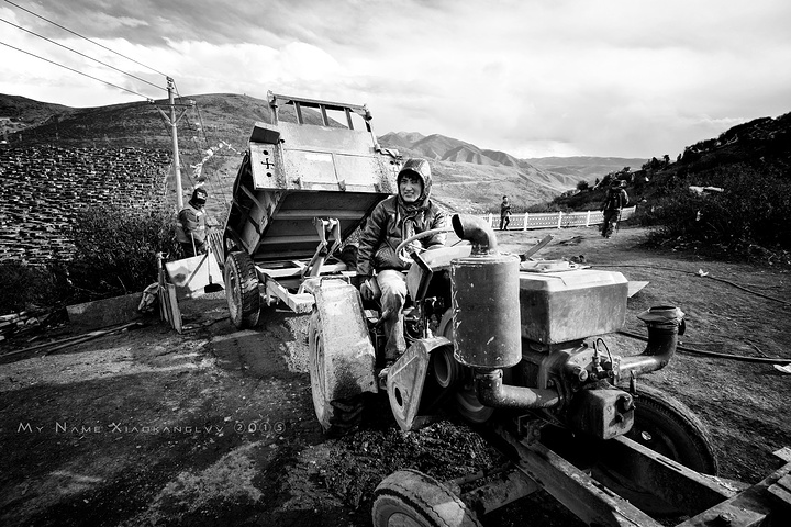 绕了一圈又回到坛城这边,准备等待日落,云层渐渐上来。藏族小伙开着拖拉机突突突的从身边走过,一个华丽的转车,趁着卸水泥的间隙,看我挂着相机,笑眯眯的问我能不能给他拍张照片。