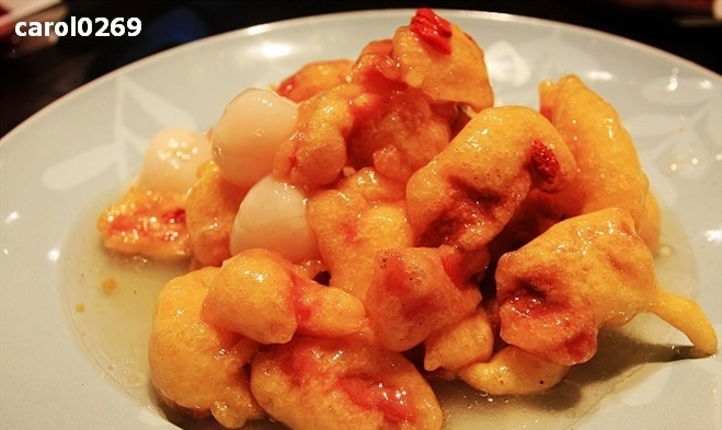 荔枝肉,挂糊的甜品菜,配毛血旺不错,单点太腻。