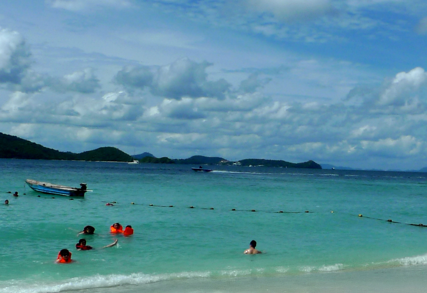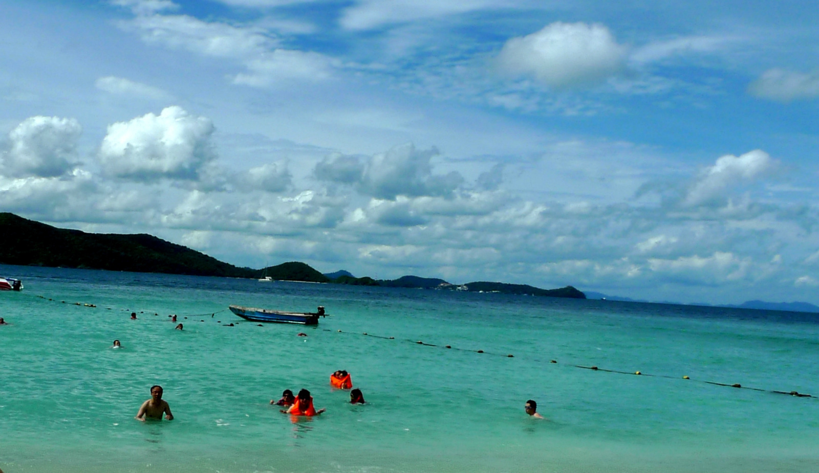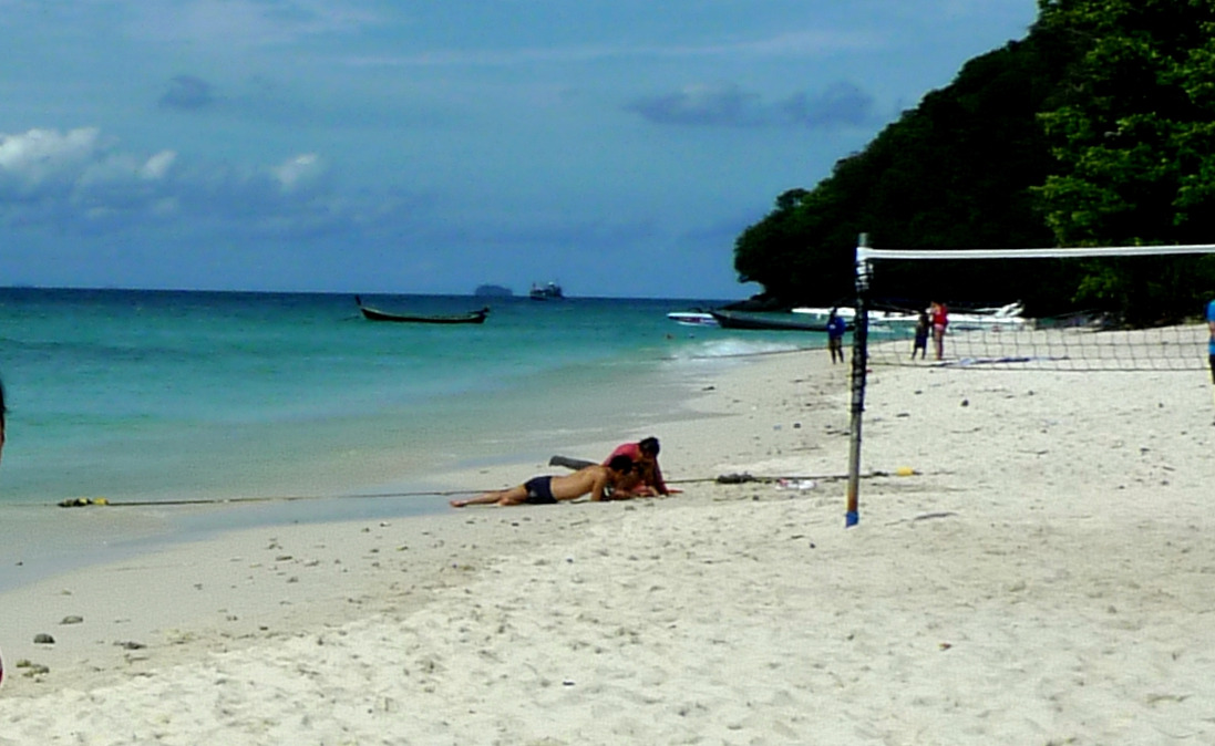 一路上,波浪比较大,有个孕妇受不了,脑袋伸出去图,还有的帅哥到船前方去看风景,小看了太阳的威力(防晒油对安达曼海的紫外线完全不起作用),一身的腱子肉全给烤焦了,后面几天都动弹不得。好不容易登上了岛,发现虽然一路辛苦,但是还是很值得的。海滩很漂亮,小岛也比较安静,人不算多。水质和沙滩,比起普吉岛主岛的芭东海滩这一类海滩,好的不是一点半点。