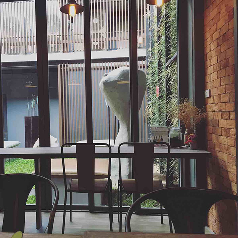 【位置】清迈府古城内 距离塔佩门不远 在周末夜市这条路上 附近有U Chiangmai hotel 辣子村川菜馆距离500米左右【环境】泥色外墙棱角有致的性感三层小院 可喫可喝可massage 内里有一方小院子 可供三桌露天座 伴着一幕水墙很美 最里端是室内座位 正前方四米有余的落地窗 阳光通透但不会暴晒 特别适合下午茶跟用餐【服务】热情周到 这是一间会收取百分之10服务费的餐厅【affogato】摆盘精致不失可爱 木板为托 玻璃容器盛盘 咖啡出品很香 affogato的喫法是将espresso倒入冰淇淋杯 同冰淇淋球混合而食 bistro的冰淇淋杯添加了特制的甜品屑 三合一棒棒哒 不过咖啡喫到后来有些回苦 用的应该不是单品豆 萃取跟压粉应该是有差错 不过还好 无大碍 我比较好将就【白开】我其实就向服务生要了一杯hot water 不曾想端来一份精致的白开 费用20铢 所以默认接受了【价格】这样的品质跟服务 我们两个人 要了一份affogato 一份mojito 一份白开 加百分之一十的服务费 总共319铢 人民币不到60 完美下午茶