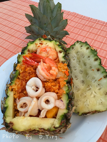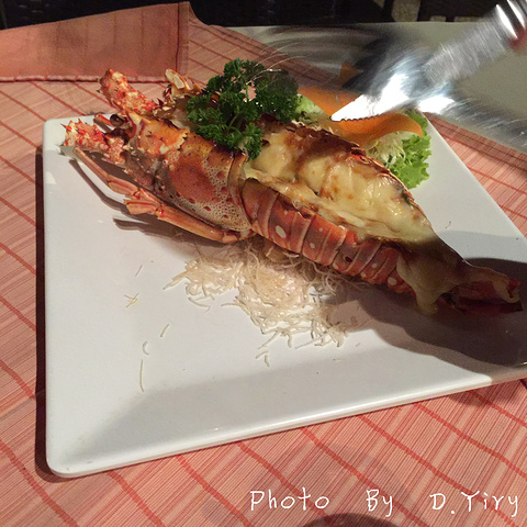 餐厅只可以刷VISA或者MASTER卡,丁丁都没有带,一开始说龙虾大概是220B/500g,一只大概是500B左右,摸摸身上将近1000B的现金点了菠萝饭西瓜汁和龙虾觉得应该够了。菠萝饭都吃完很久了还没有见到我的龙虾,问经理我的龙虾呢?回答说帮我取消掉了因为我钱不够,拜托我是摩羯座诶!所以又坐着酒店的接送车去取了次钱,回来又点了龙虾。