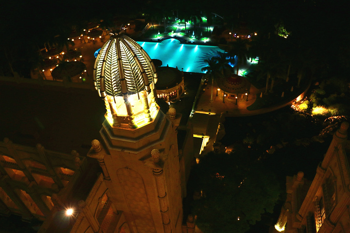 酒店夜景,可以让酒店工作人员指路上到酒店的最高塔顶,可以看到度假区的全貌