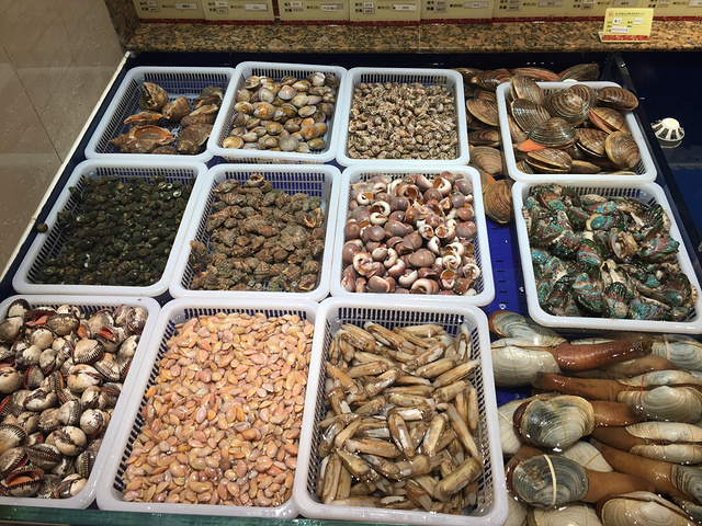 出发前吃了一顿美美的早餐,然后就驱车前往目的地。路上上攻略和大众点评搜索吃午饭的地址,无意中发现一家沈家门有一家叫“高佳庄海鲜超市”的评价很高,于是就直奔目的地而去。停车比较纠结,车停的略远走过去的。店里生意很好,上楼点菜员就迎上来点菜,价格也很实惠,味道还不错,点了三菜一汤,才100多。是这几天假期里面吃的最实惠的一顿了。 午饭后直接前往乌石塘景区,门票40元/人,学生证可享受半价。里面就是一个大公园,加上一些水上项目的游乐设施,小孩子们用网子网泥鳅玩的不亦乐乎。还有一片全是乌色石头的沙滩。门票还含了几分钟的海上游船,上船后会有人问你需不需要捞螃蟹(130元一次)和海上20分钟游(100元一次),捞螃蟹就是让你用一个带钩子的棍子将海上飘着的一些网子网上来,网上来后可以免费加工给你吃,我们同船有人捞了,捞上来些小螃蟹,貌似没有什么意思。海上游的话鉴于当天天气实在不好,没有什么看头,我们也没去,游船直接把我们送回了出发地。 结束后直接回酒店入住了,入住时酒店前台MM说酒店可以提供食物加工,加工费也不贵。略作修整后,去酒店不远处的菜场买了新鲜海鲜回酒店加工,菜场卖的海鲜很便宜,尤其是贝类产品,海瓜子才12元一斤,蛏子挺大的,也才18一斤。两人买了份海瓜子,一份南沙贝,还有一些皮皮虾去酒店厨房加工。酒店的厨师阿姨3个菜非要收80元的加工费,我们买了这么多菜才花了69元好吗,最后通过讲价,70搞定,但是不得不说,酒店的加工费还是挺贵的。后来到南沙附近玩,饭店老板说他们一个菜的加工费才收10~15元左右。 饭后,附近逛了逛,然后晃到了烧烤一条街,全是烧烤烧烤啊,在当地特产超市买了些特产带回来。