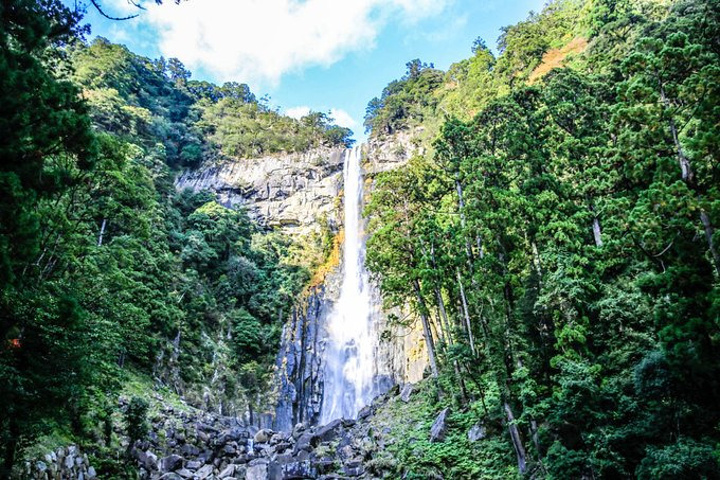 那智瀑布是日本有名的瀑布之一,号称日本第一瀑布。在它的周围还存在有48条瀑布。该瀑布落差133m,宽幅13m,瀑潭深度10m,在这里,群生着千姿百态的植物。神秘的那智瀑布是熊野那智大社的别宫——飞泷神社的神体。如果走到观瀑处就可以在近处看到瀑布飞流直下的情形,还可以喝到延年益寿的瀑布神水。观瀑最佳位置有二,一是在建于瀑布最下方的飞泷神社,由此可上望瀑布宏伟景象及近听隆隆流水声,有兴趣的还可进入神社参拜及一饮据称能延年益寿的神水;另一则在那智山中腹的青岸渡寺三重塔前(由飞泷神社大门步行10分钟可达),在此可从高处观瀑布直奔百米深处的场面。经过那智瀑布,沿石阶向上便是熊三山之一的熊野那智大社。居高临下眺望四周,有残留着平安时代气息的熊野古道及与那智瀑布正面相对的青岸渡寺,风景怡人。目前那智瀑布已申请为世界文化遗产。是一个集自然、历史、文化为一体的旅游胜地。
