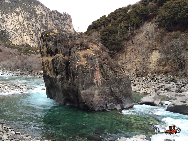 途中路过一处景点,在湍急的河水中屹立着一块巨石,上书“中流砥柱”。。。