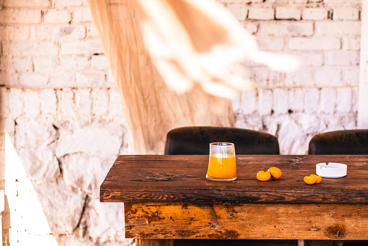 侯同学的橙汁,跟眼前的景色很般配。