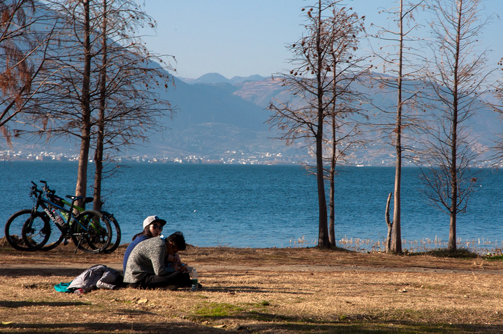 进公园前全是绿绿的菜地,白族大妈们还在忙乎着什么。