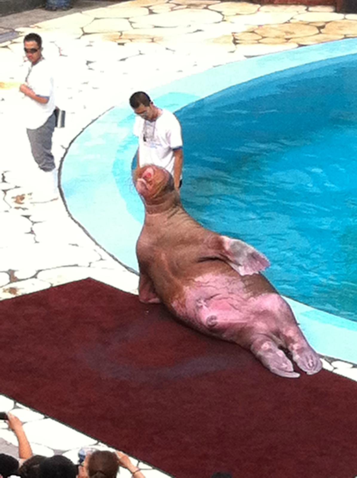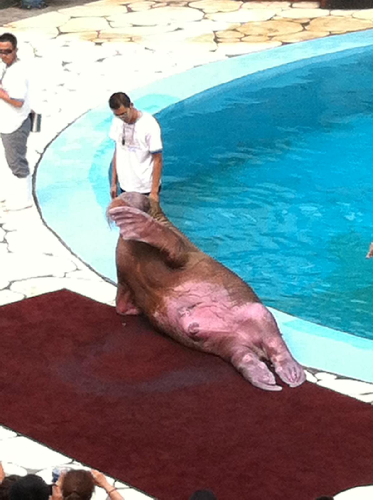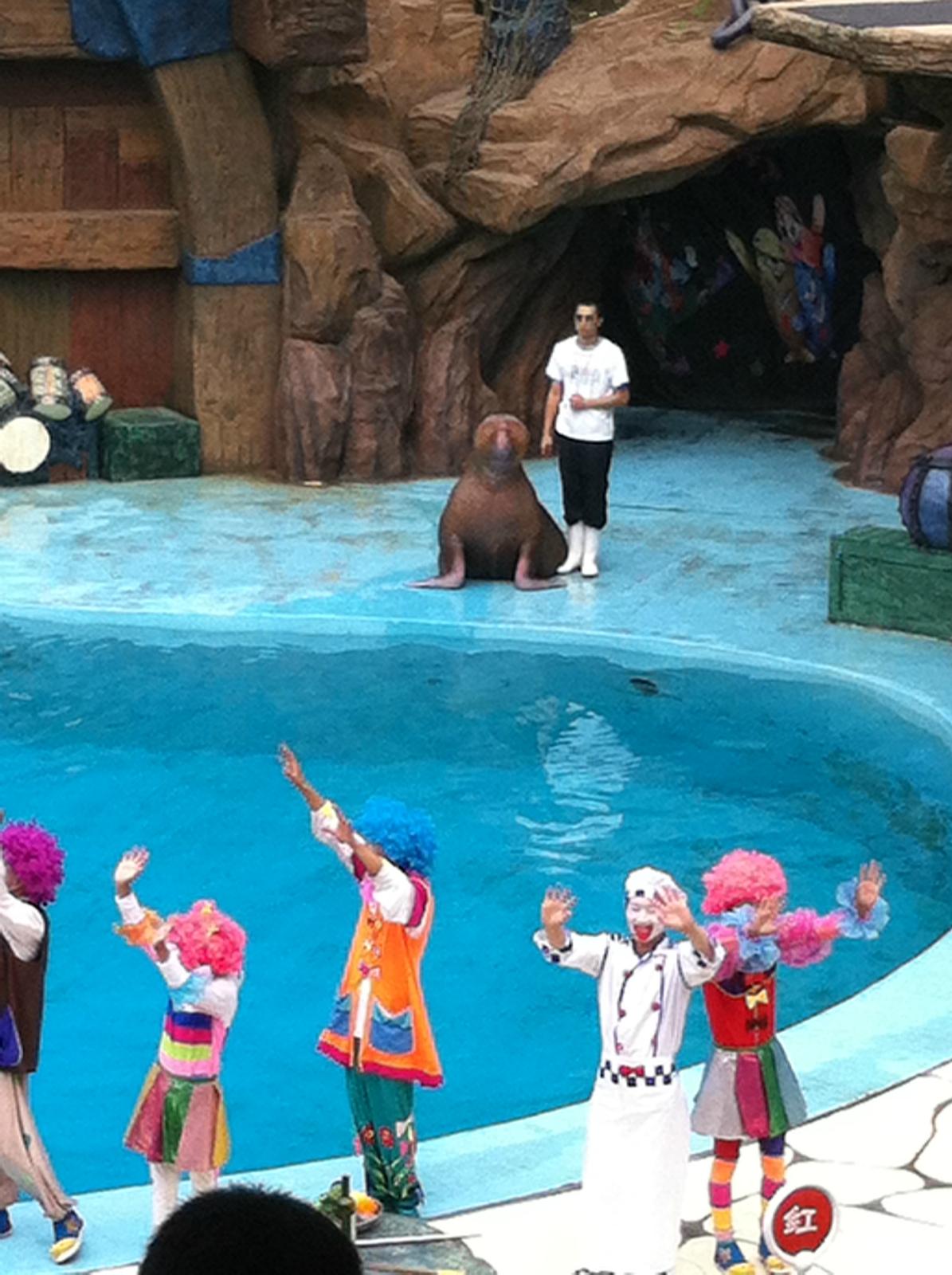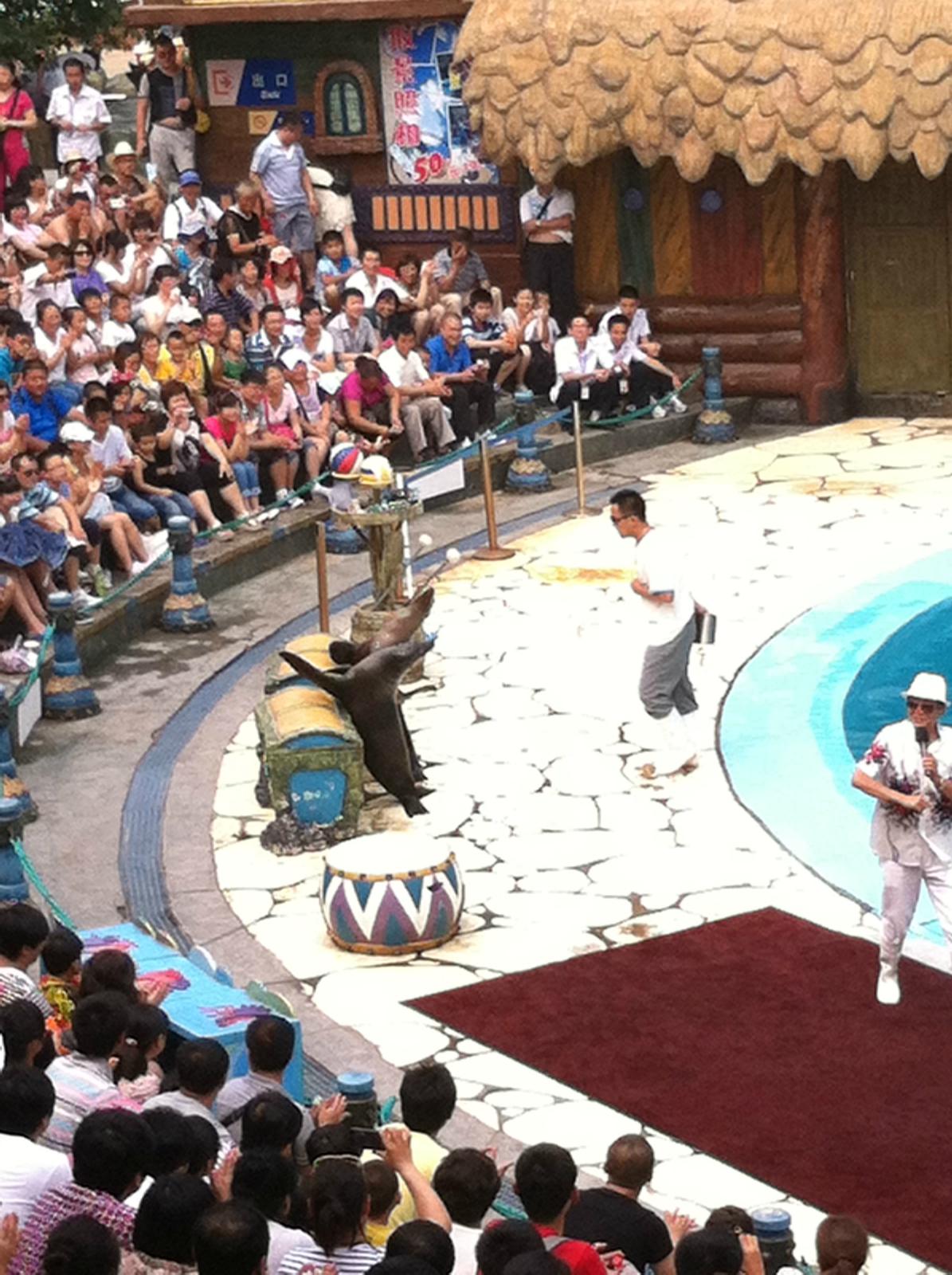 小剧场人满了,我们的座位不是特别好,但是也看得清楚,动物们很可爱也很辛苦,非常卖力地表演才得到一点点吃的。