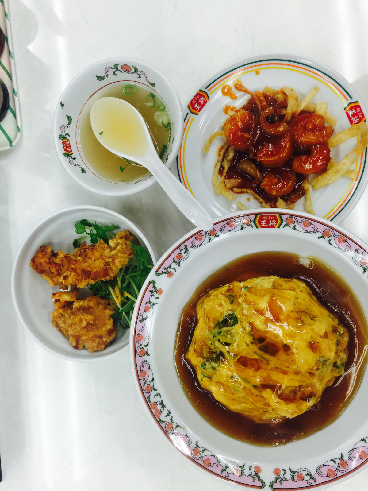 最终事实证明这是我们这次关西行中吃的性价比最高的一餐,和小伙伴点了天津饭和煎饺套餐、糖醋虾仁,无一踩雷。