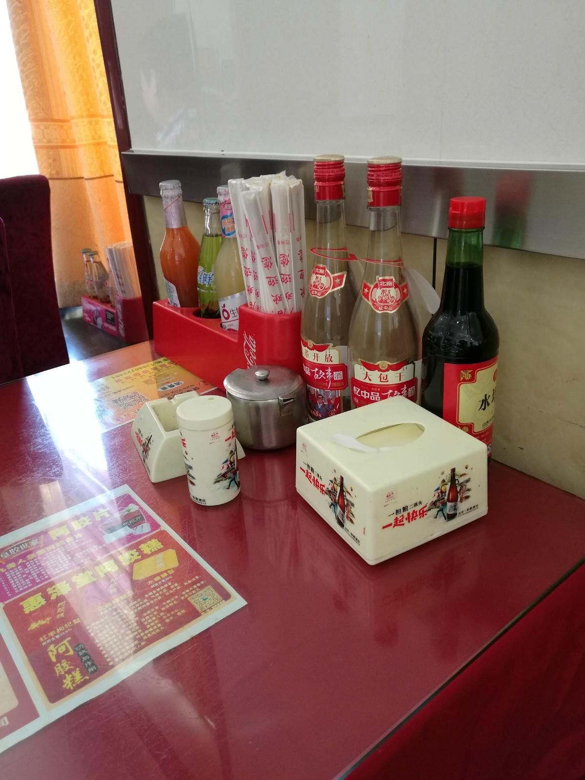 坐等上菜的时候我细细打量这里,桌上有陈醋等用品,