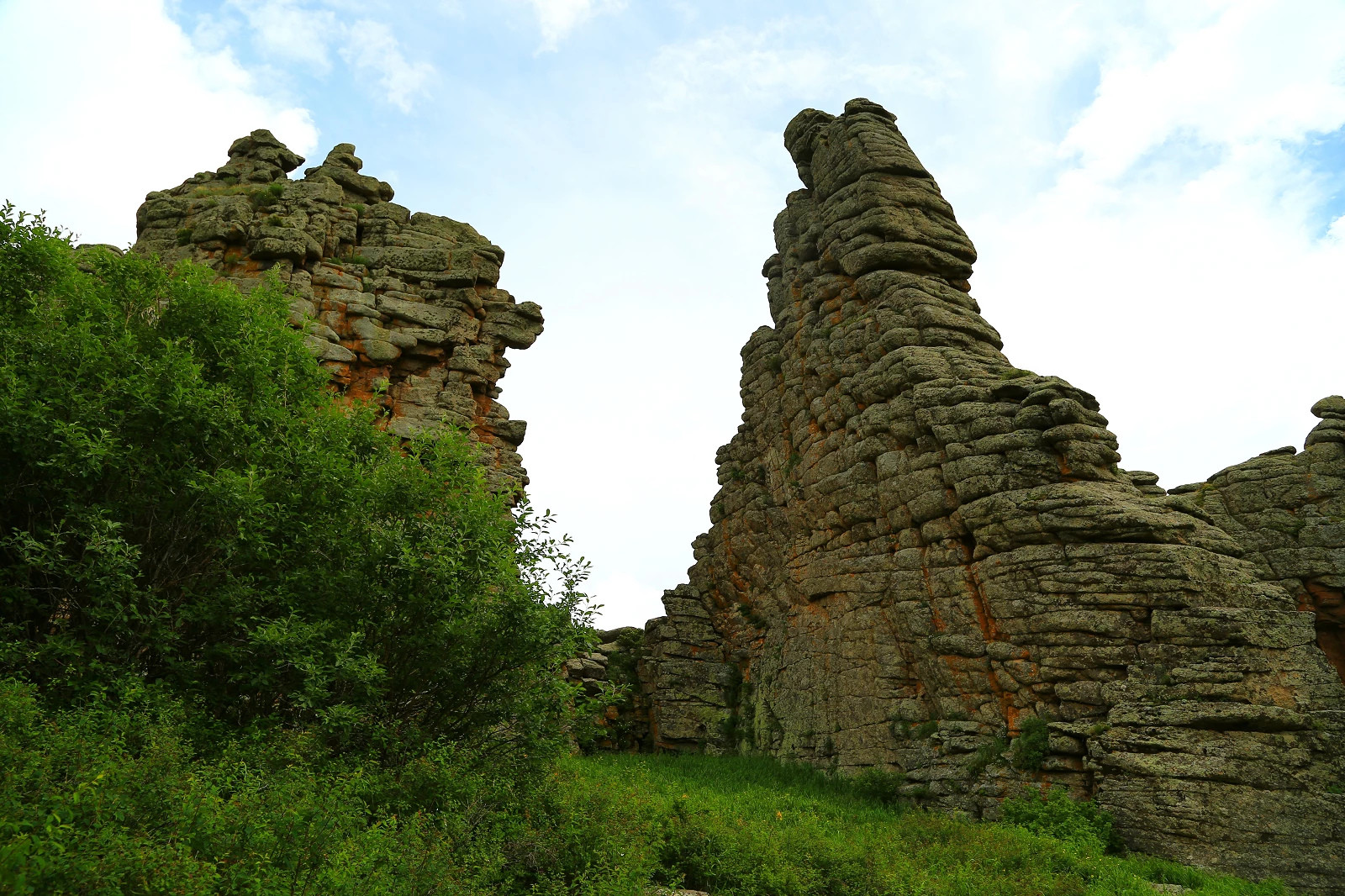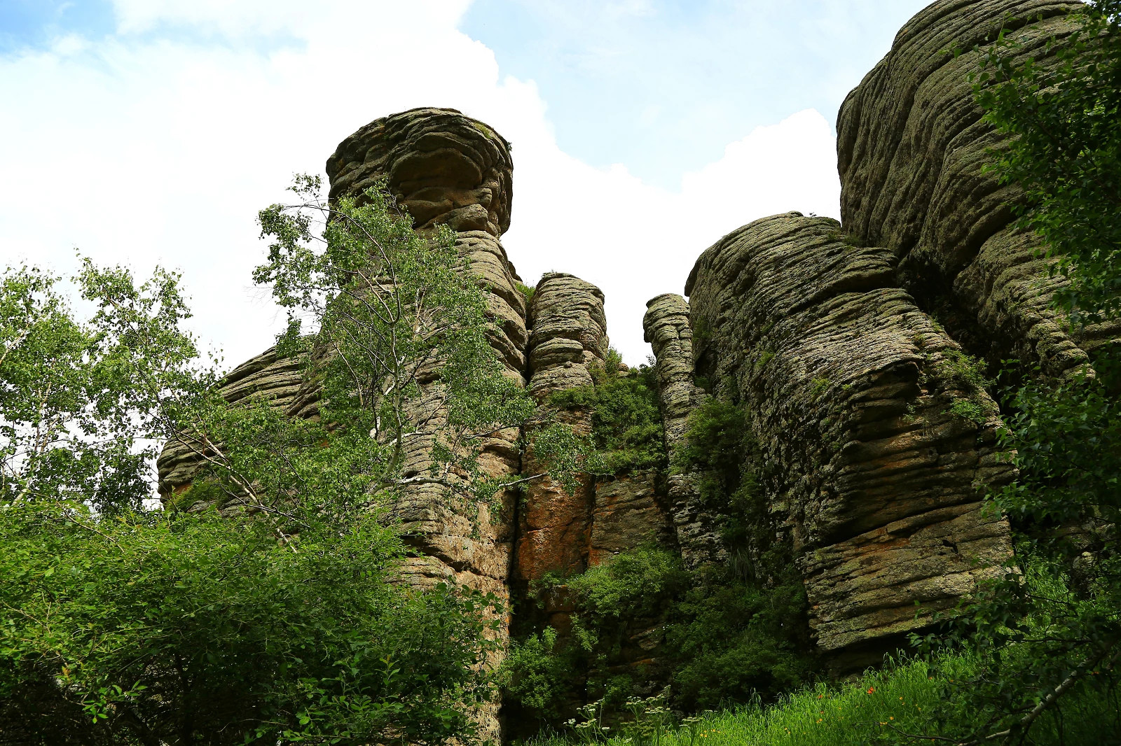 由于第四纪冰川长期的精雕细刻,造就了阿斯哈图冰石林这一方神秘的独特的自然风貌,具有华山之险峻,黄山之秀丽,泰山之雄奇。这里山连着山,峰连着峰,山山各具特色,山山不同,峰峰各异。阿斯哈图冰石林风光秀丽,景色迷人,是举世罕见的“冰石林”。阿斯哈图石林发育类型很多,形状千姿百态。这里跟云南的石林不一样,云南的石林看起来觉得有点像人工的,这里的石林看起来比较真实。