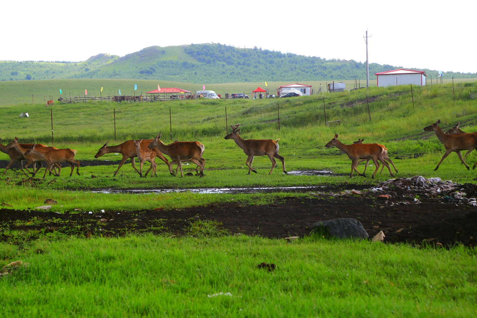 草原上野生的马鹿: