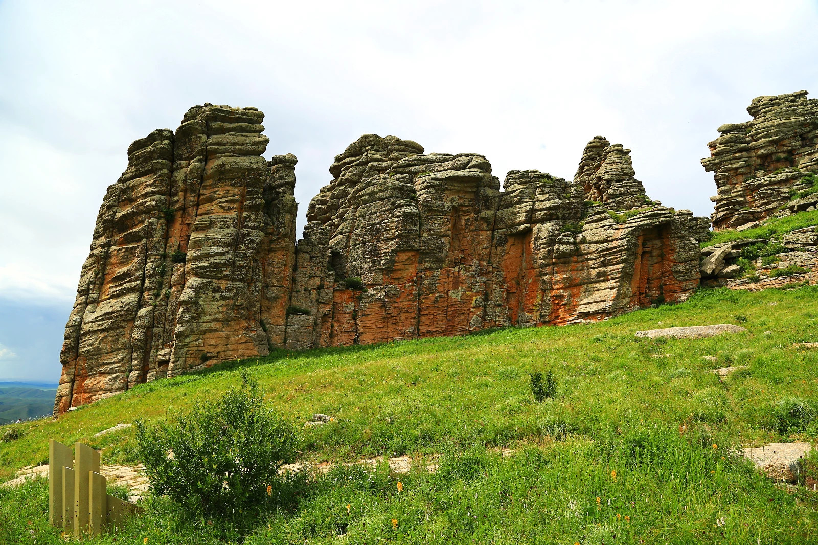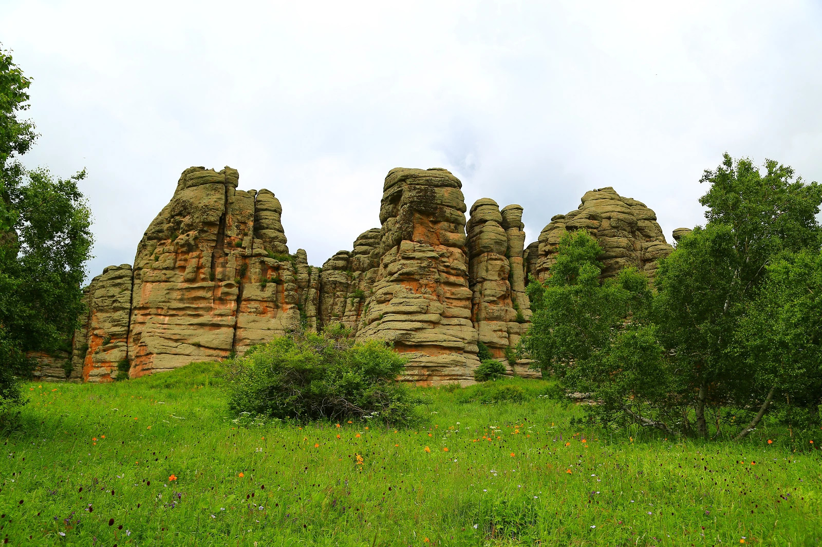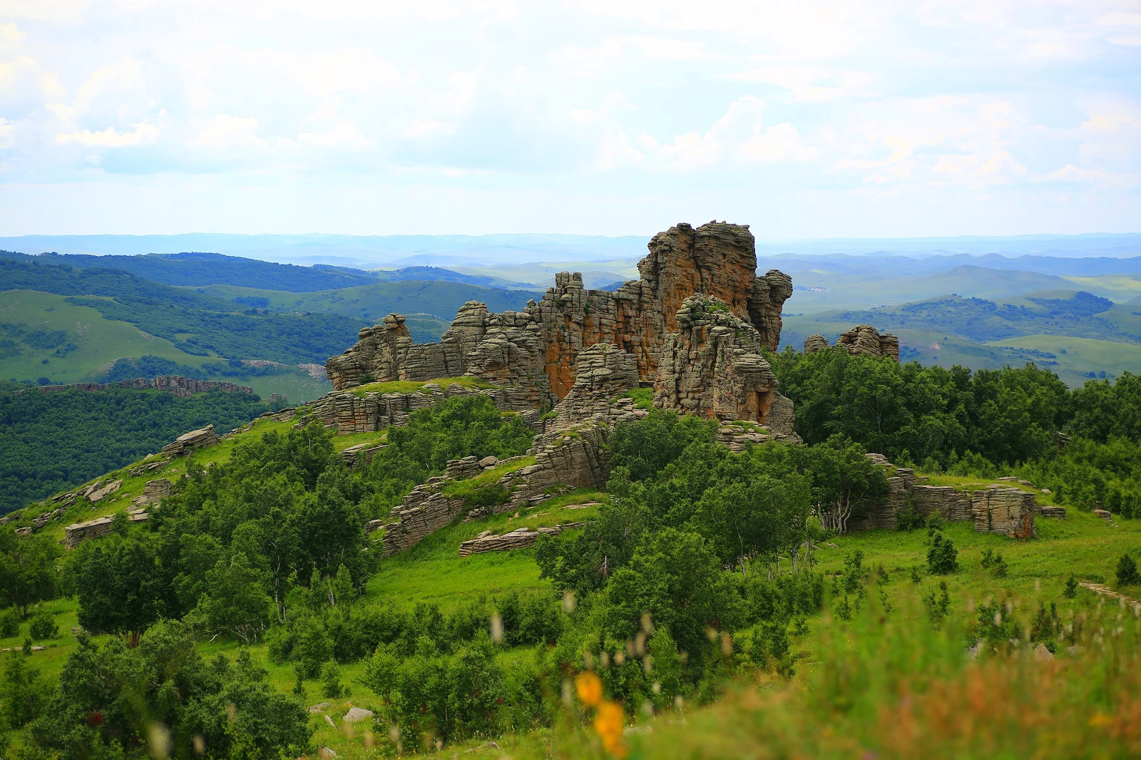 第二天出发去阿斯哈图石林,途径贡格尔草原,一路我们被一路美景所吸引,要求能下车拍一下草原风光,牛羊成群的景色,可是小甜甜(景区的陪同工作人员,很豪爽很甜美很多才多艺的一位姑娘)说怕路上随便停车会不安全,所以一路上好多美景都错过了,路上也看到好多自驾游的小车停车拍照,好羡慕哦,我看到美景就手痒痒想拍照。