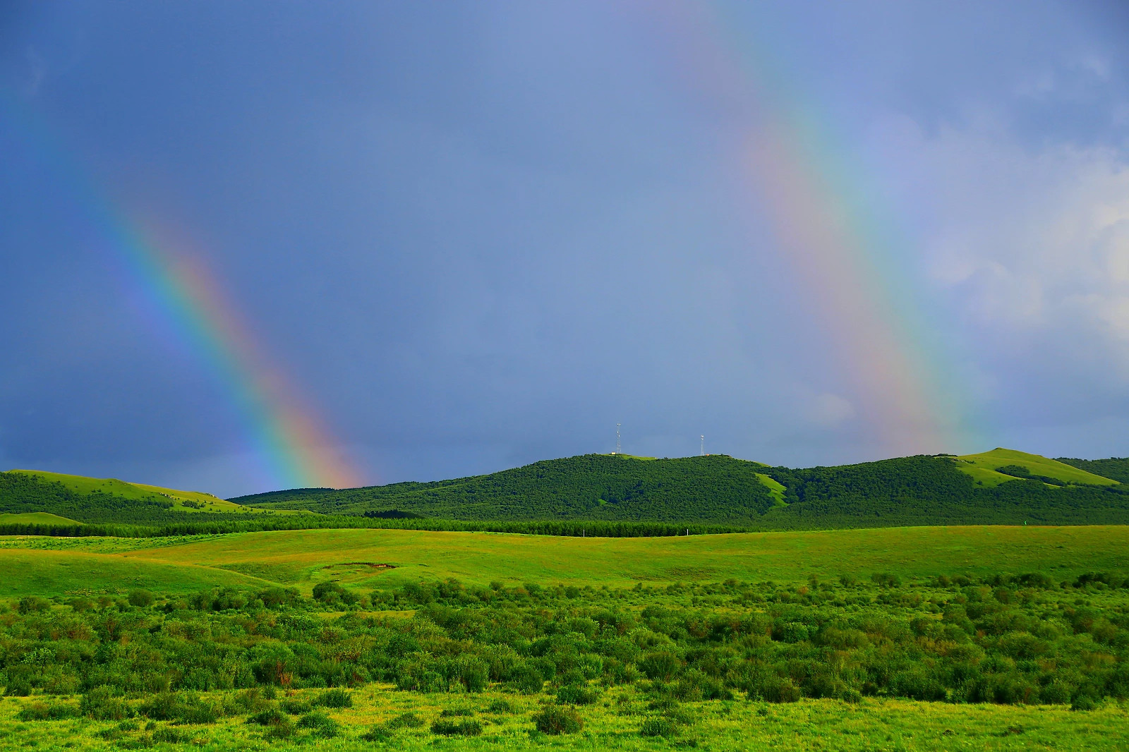 克什克腾贡格尔草原上的彩虹,很美,很艳,很多彩,这里的牧民告诉我们双彩虹经常可以看到,最多还能看到五道彩虹呢。