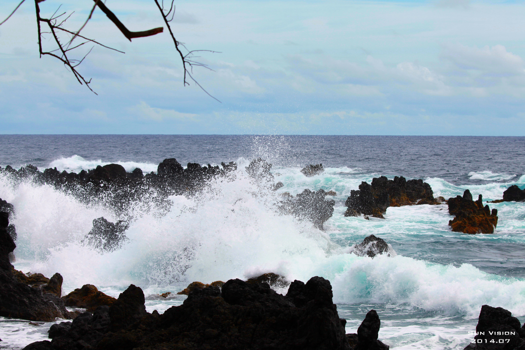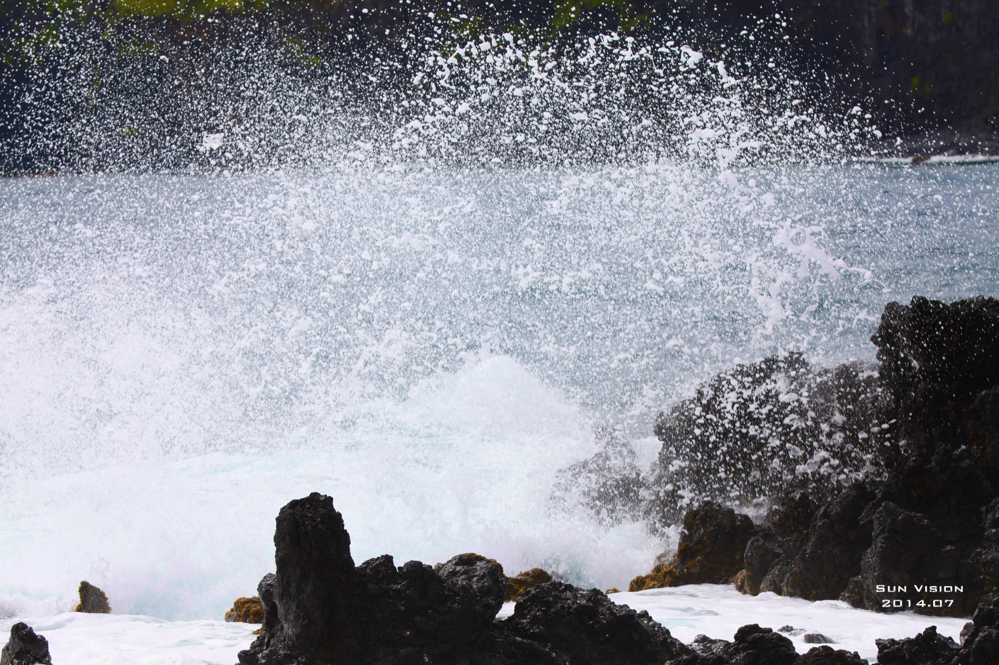 穿过教堂对面的街道,那里有风景如画的海岸,白色的海浪拍击着黑色的岩石
