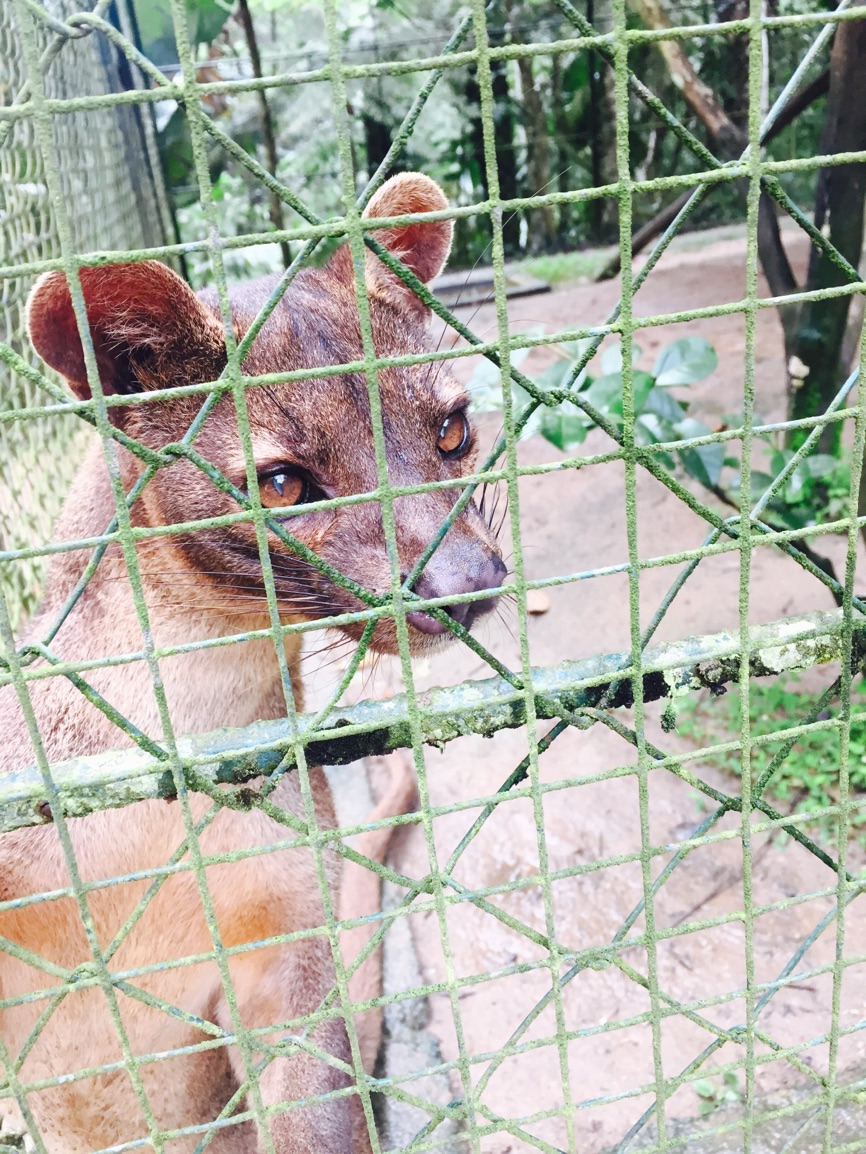 这个像小狮子一样的小东西叫meng,我也不知道是哪个字,反正是挺萌的,不过它可是狐猴的天敌哦,专吃狐猴。