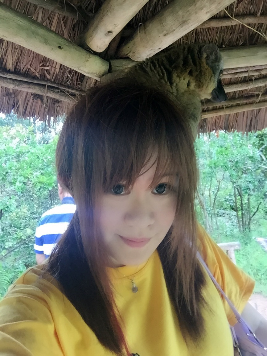 一只小米猴,小猴纸胆子最小不敢跳到我们身上来吃香蕉只能伸手喂,但是长得最可爱的就是小米猴了啦