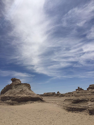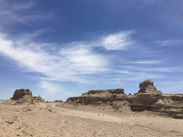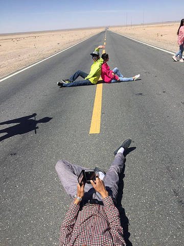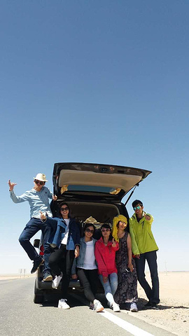 新的包车师傅王哥,一上车就给我一盒老酸奶,原来他们这车,王哥都是成箱的买矿泉水,还有一箱老酸奶,路上时不时的买个西瓜哈密瓜的,真是大方。甘肃的雅丹那段修路,他建议我们去青海的雅丹,说更大更值得一去,我们就听他的去青海雅丹了。都是荒漠,沿路又热又晒,然后我就。。。又晕车又头疼!赶紧就近找地方吃午饭,也好让我们休息。一坐下王哥就不见了,过了会见他买了两盒药回来,我因为不知道是高反还是一热一冷着凉了不敢瞎吃,就说我吃了药,他非追着问吃的什么药,说红景天没用,他们当地人都是吃头痛散和葡萄糖,让我一定听他的,最后拗不过只好吃了,这个时候我已经不想继续旅程了,觉得身体吃不消,问王哥有没有朋友的车回西宁,我想结束回家,说着说着居然哭了,王哥说帮我打听着,然后不停安慰我。午饭又只吃了几口菜,老板一家回族人,用他们的语言问王哥我怎么了,然后端了个不知道是馍馍还是饼的东西出来,让我吃,说的普通话听也听不太懂,大意好像就是吃了才有抵抗力,王哥在一旁帮腔,就咬了几口,那叫一个硬啊!本来天气干,喉咙干,实在吞不进去,放着没吃了。也不知道他们有没有什么讲究,就这样浪费对他们来说会不会不好。倒是没说我,走的时候我要灌开水,还帮我倒水。。真的觉得西北人都好耿直善良~王哥还特意把我调到副驾驶来坐,位置大好休息。去雅丹的路上看到一群野骆驼,王哥让我们下去拍照,可惜这时我还没恢复就没下去,后面到雅丹,车不能开进去,跟他们一起走进去看这令人称奇的独特地貌。这里的雅丹没开发 没人管,不用交门票,可以走在上面,拍完照又上车赶路去鸣沙山。晚上住鸣沙山脚下王哥朋友的家庭酒店里,正好我和他们中两个厦大的女生住一个三人间,晚上王哥带他们去沙洲夜市吃饭,我让小伙伴给我打包,准备好好休息休息。