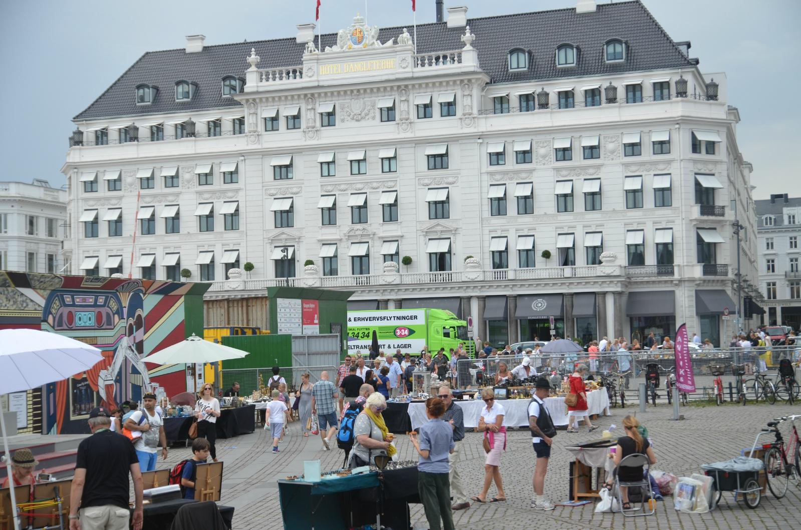 再往下看是一座巴黎风格的建筑物,这是一家已有100多年历史的大商场,即著名的玛格辛(Magasin)。玛格辛南边的街道叫做“酒窖街”(Vingårdsstræde),这条街上的6号是一座很有趣的房子,童话大师安徒生年轻时曾经在酒窖街6号住过。