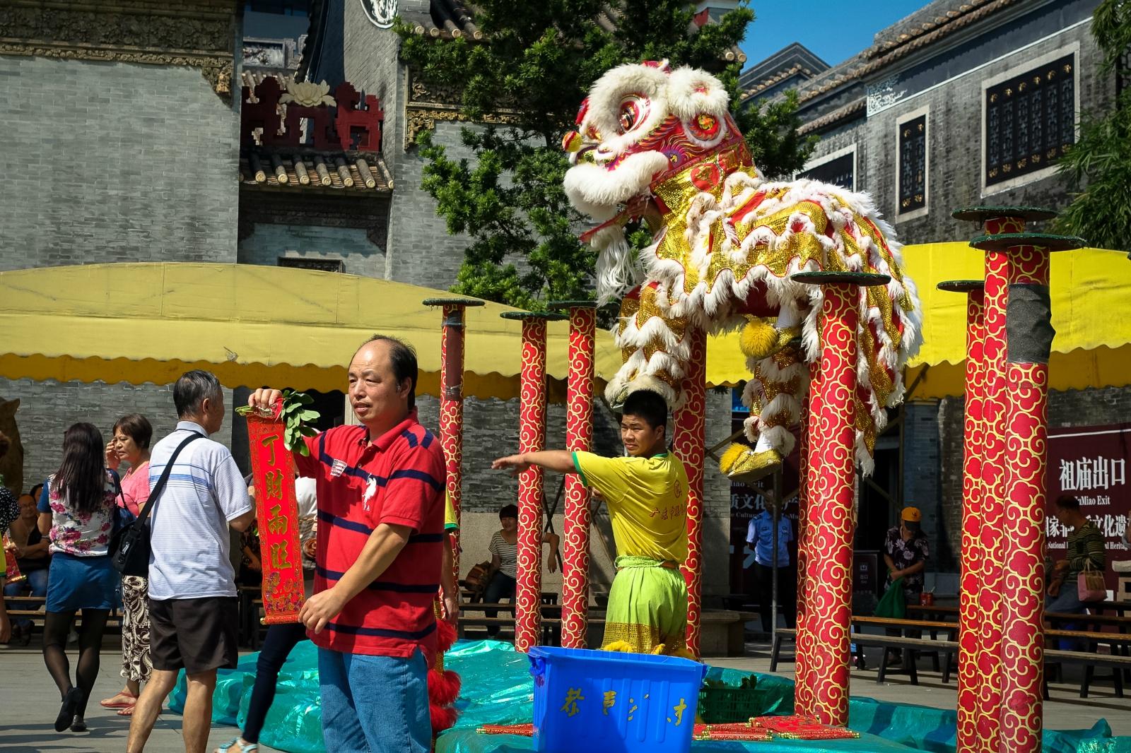 可以说我来佛山主要不是为了祖庙,而是特意来现场亲眼看一遍舞狮表演。看着狮子一会爬刀山一会踩梅花桩做各种动作,真的就像电影里演的一样,这趟来的就值了。我想除了岭南在其他地方可不容易看到这样的表演。