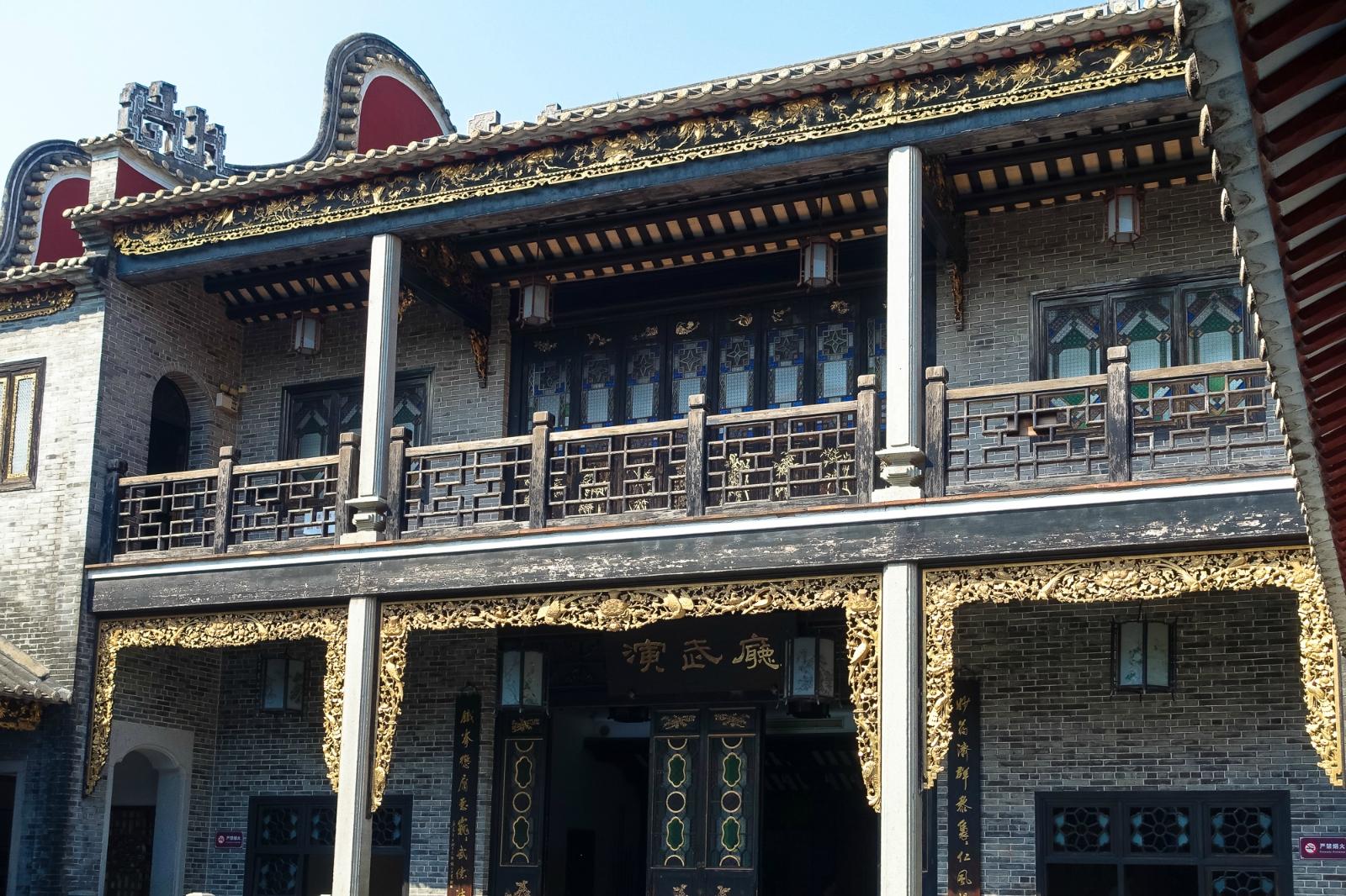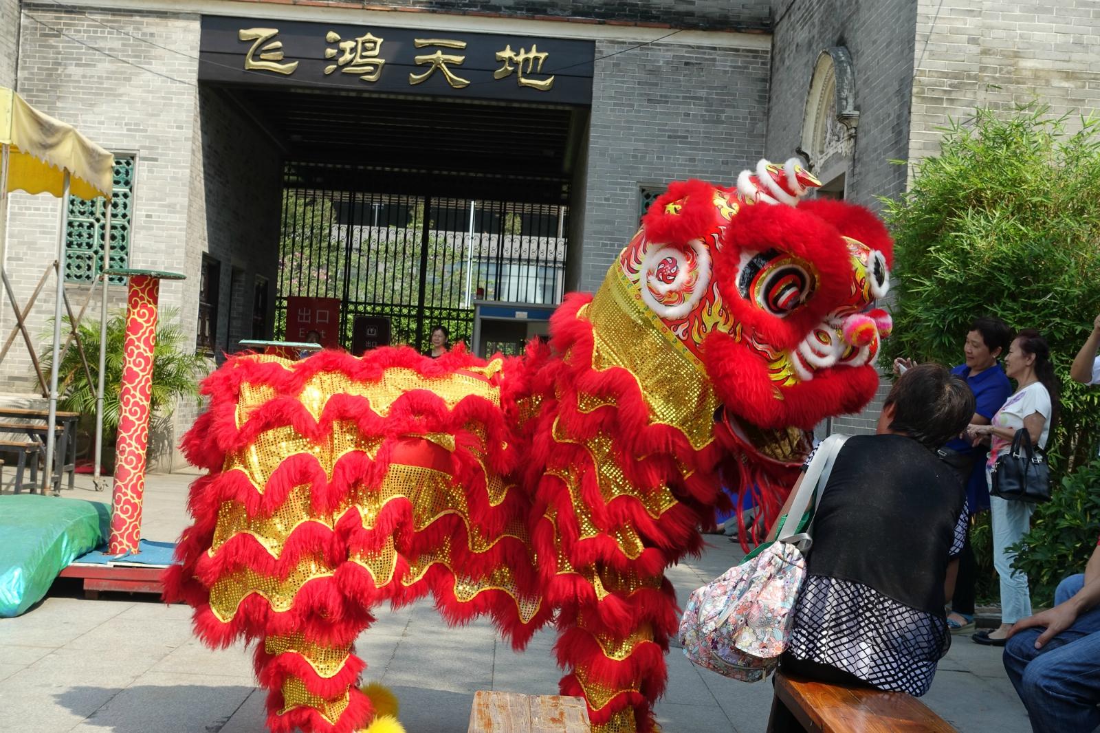 黄飞鸿纪念馆,看完黄师傅的生平介绍之后正巧还赶上了上午时段的表演。先是在纪念馆内的一段武术表演,然后在外面的场地上再来一场舞狮表演。