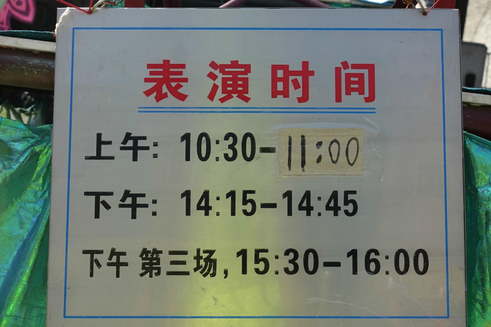 这个是舞狮的表演时间,注意时间千万不要错过了,功夫的表演在这之前。