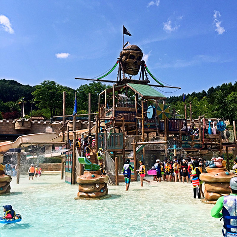 因为去的中国人比较少所以详细写写流程,兑换完加勒比通票后检票进场,然后会看到buy-coin这里有30000、50000、100000的额度的手环,手环里的钱是可以扫二维码使用的,在水世界租救生衣或是吃饭结算用的。如果没有现金可以刷卡买手环,最后出园时再在这里办理退余额。如果本身现金不够需要兑现金,可以进去时刷卡买个大额度的手环,出来时会退韩币。然后就跟着大家一起上楼,可以坐电梯或走楼梯,就能看到更衣室了一层和地下都有,把鞋脱了拿着进。进去后看到柜子上有钥匙那就是还没使用的,投五百硬币进去就可以用了。一路上可以看到很多摆放救生衣的地方,这些都是要买的如果不想买的话从更衣室出来后问一下那些穿黄色救生衣的女生去租的地方,大约6000左右。提醒一下,救生衣一定要租有的项目没有救生衣还是具有一定危险性的,有的没有救生衣也是不能参与的。出园时别忘了先退救生衣再退手环。做好防晒工作,穿露胳膊露腿的泳衣半天就可以晒出分界线。