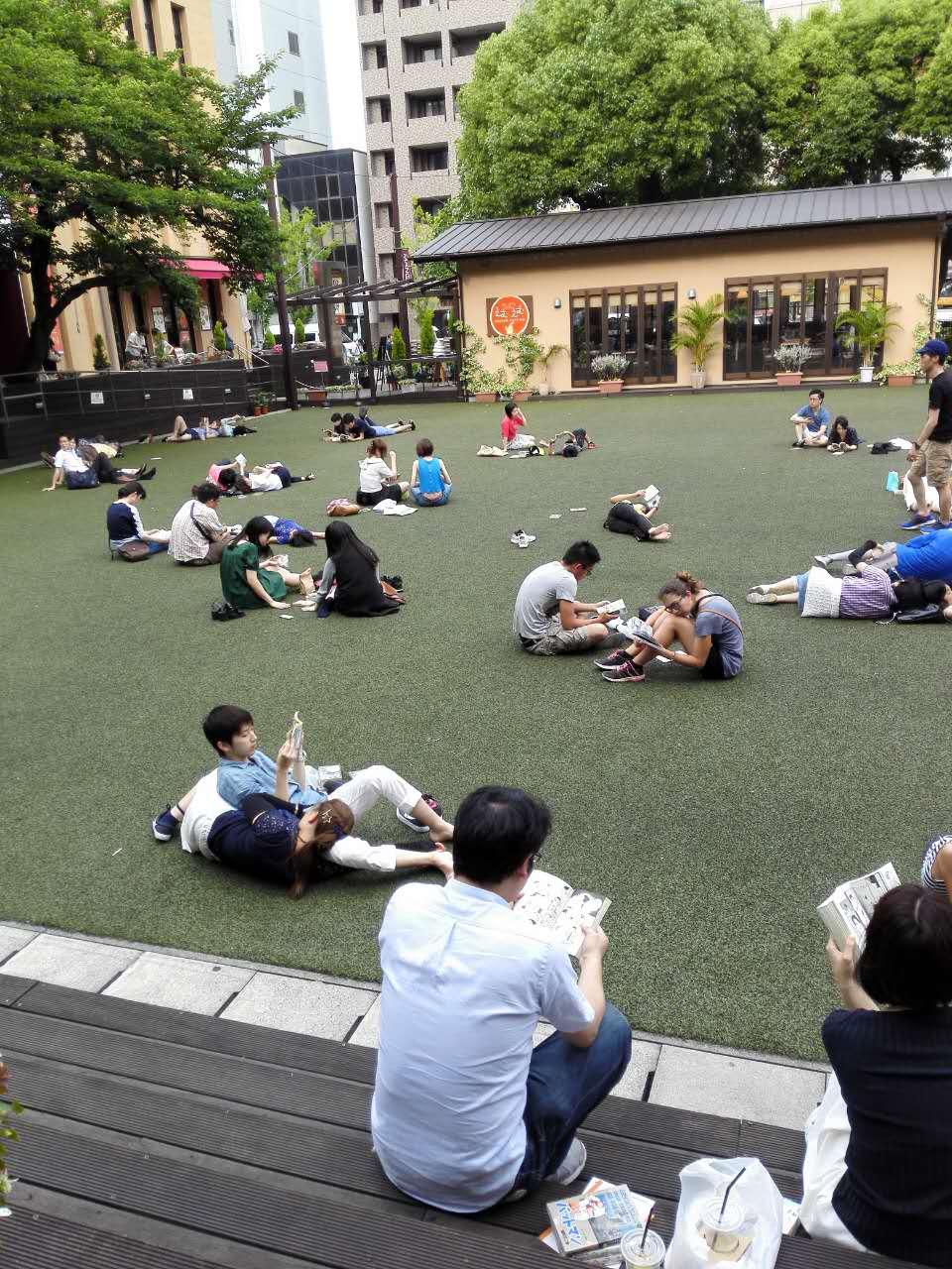 因为漫画博物馆是小学改建的,在操场上随处可见拿着漫画的人们,慵懒的晒着太阳看着喜欢的漫画,不用过多交谈,也很惬意,很喜欢这种状态。我也拿了本漫画在操场上边看边睡了一觉。