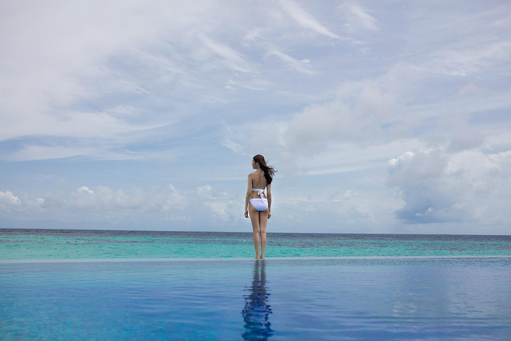 酒店的无边际泳池,好像站在海里一样
