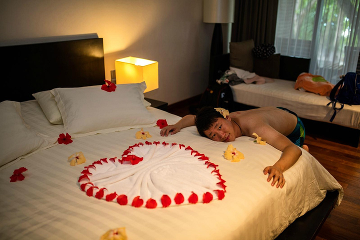 回到屋里惊奇的发现房间被打扫了并且布置成这样,算是给蜜月的礼物