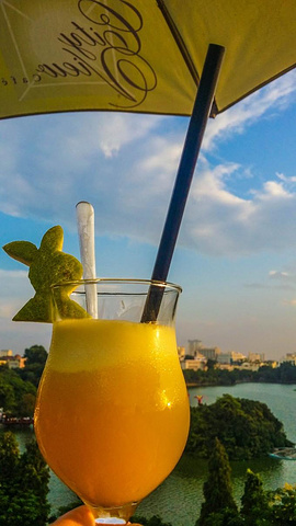 敬美景、夕阳与凉风。船屋顶上喝着饮料看着夕阳,赏着还剑湖美景,吹着凉风,是一件很舒服的美事