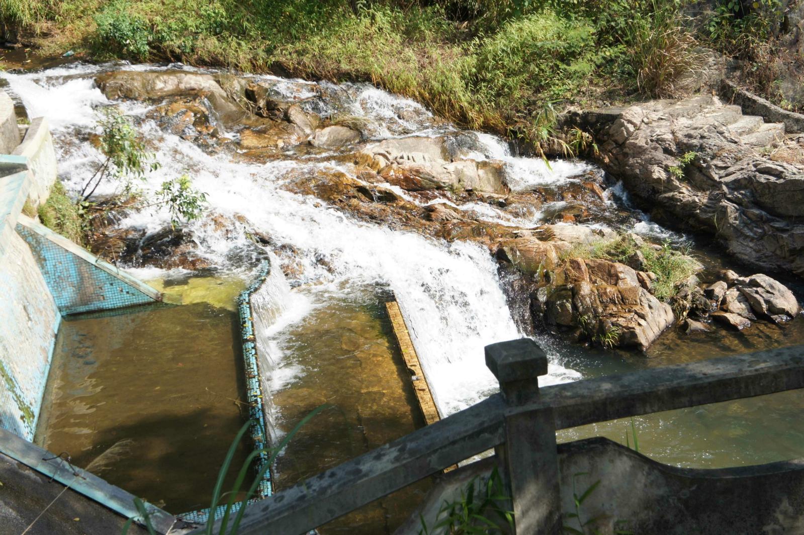 道观往下,就是瀑布的源头,站在这里远眺,能够饱览山下人工湖的风景以及周边10几公里内的风景。