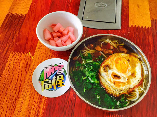 走进一家清真馆(张记)来一份特色牛肉粉+一份酸萝卜.就俩字“绝了”.老板看我来旅游就过来聊上两句,他说:“飞机就是快就是方便,越来越多人到这玩,就是因为交通便利带动这里的发展,才让我也买上了车.” 一份牛肉粉12 酸萝卜免费