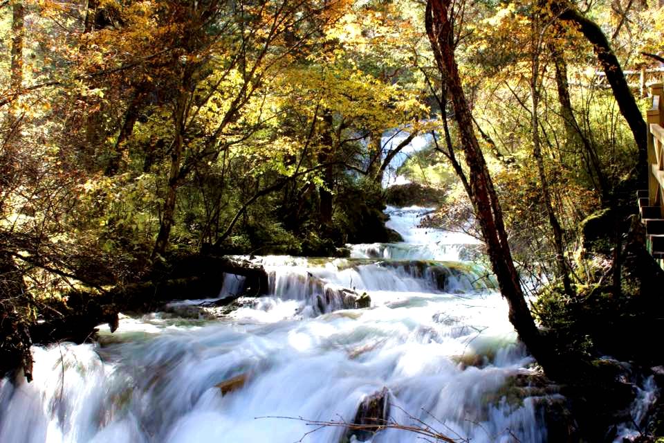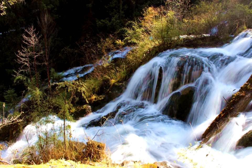 该景区位于四川省九寨沟景区的花石海下游,日则沟和南日沟的交界处,是文明海外的一处精致的瀑布群。