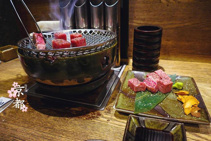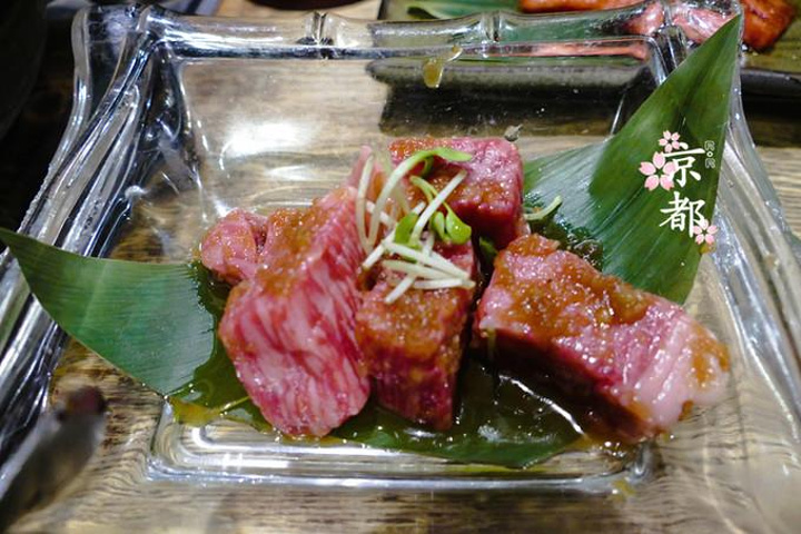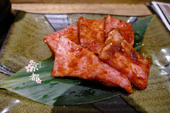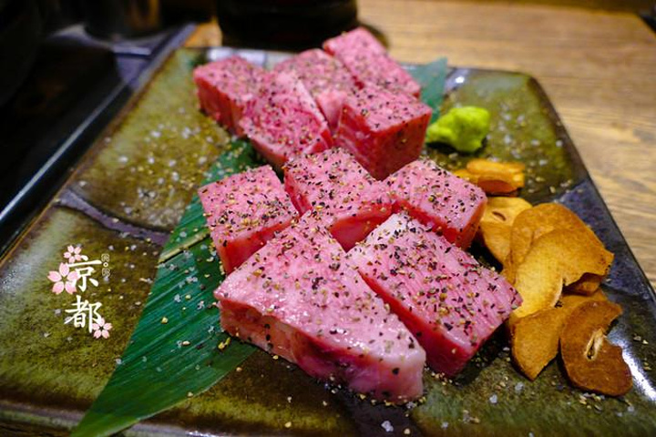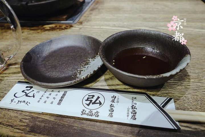 二条城出来,已经下午四点多了,于是准备去吃今天的午饭。。。 【弘】 地址: 京都中央 京都府京都市中京区木屋町通三条下る材木町176 电话: 0081-75-2231129 营业时间: 17.00 - 22.00 首先,建议预定,虽然我没有预定也吃上了。到这家店的时候大概下午四点半多不到五点的样子,然后到了发现还没开餐,于是门口小等了一会儿翻了下菜单,全是日文只能看图说话。。 五点进门后,跟店员说我们没有预约,然后店员就翻预约记录的本子告诉我们还有位置但是七点前需要吃完(好像是七点。。我俩吃肉还是很迅速的,所以妥妥的必须可以搞定)。等我们吃完后结账时听到店员跟门口的一对情侣说今天已经没有位置了,需要明天才行balabala。。落座后开始点餐,按照价格从高到低点了不同的五份肉,店员说应该够,事实是我俩太能吃后来又加了两盘。。 之前一直在想,好多点评中说的牛肉入口即化是种什么感觉。。第一块牛肉放到嘴里的时候简直好吃到爆,满口的幸福感。那种软、香、嫩,真的用入口即化来形容一点也不为过。每种肉有不同的调料来搭配。图中那个黄色的小薄片,我一直不知道是什么,一开始以为是肉桂片之类的东西,去神户吃牛肉的时候才知道是蒜片=.=不过味道真的很好吃,没有很重的蒜味,吃一口肉加一口蒜片回味无穷。因为菜单是日文所以现在已经记不清点的肉叫什么了,只记得有一盘有点辣味儿的牛肉特别好吃,可能因为我跟老公口都比较重,爱吃辣,这个后来又加了一盘。喝的老公点了白酒,我要了一个梅子酒,比较适合女生喝。 另外这家还有招牌餐牛肉刺身,生牛肉加生鸡蛋,感觉蛮补的。但是我跟老公都不爱吃生,想想都会撇嘴,所以果断没有尝试。这家烧肉店是老字号,准许经营生吃牛肉,据说之前很多店都有牛肉刺身卖,但后来有人生吃牛肉死掉了,就只规定某几家可以经营生牛肉餐,弘就是其中一家。 我们两个人一共花费10310,相比后面去神户吃的牛肉来说,这家性价比超高,而且味道是真的好!神户的莫莉亚牛肉品质更好,但是吃到后面会腻,也有可能是我们吃完弘之后第二天接着去莫莉亚的原因吧。。这家去京都一定要吃,太赞!