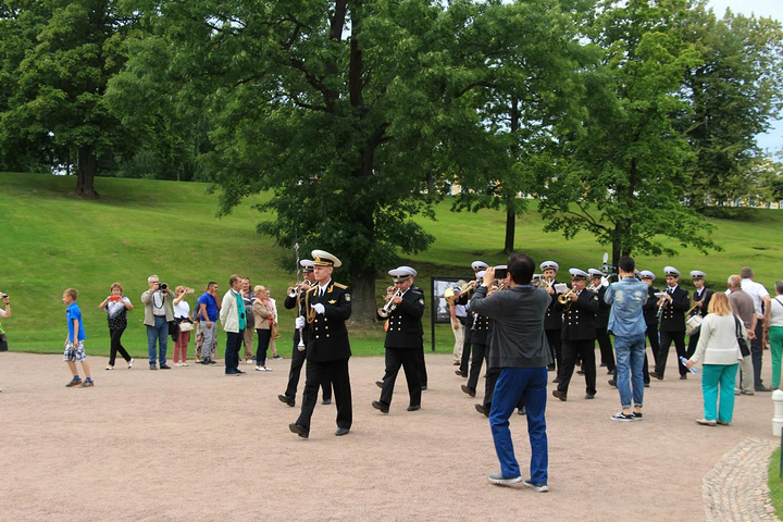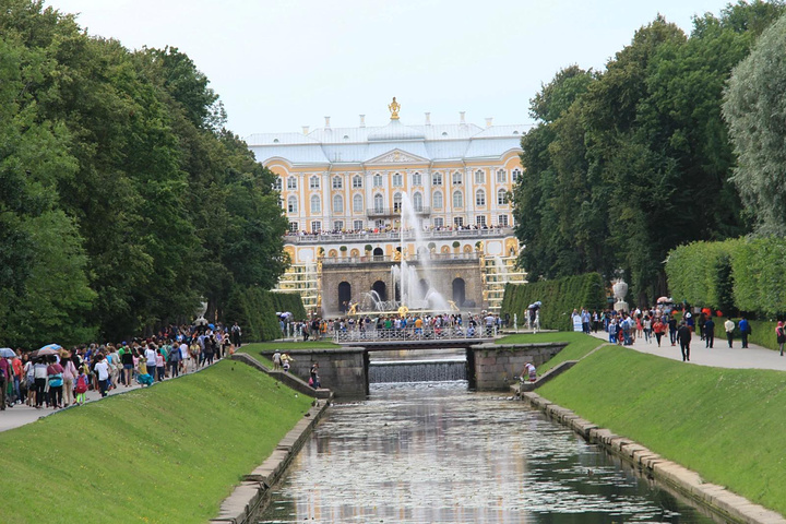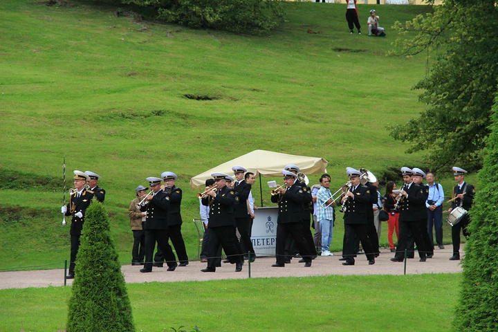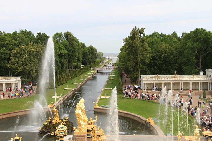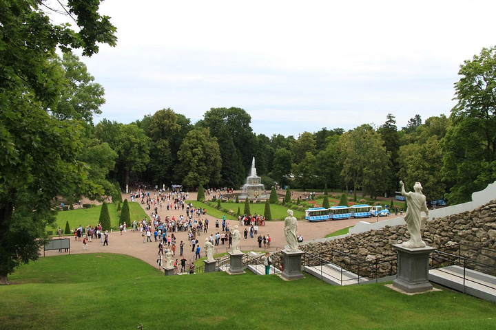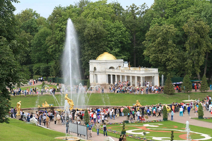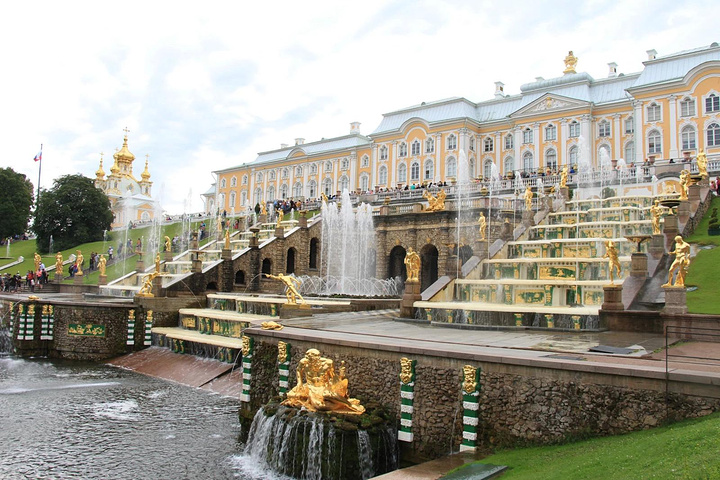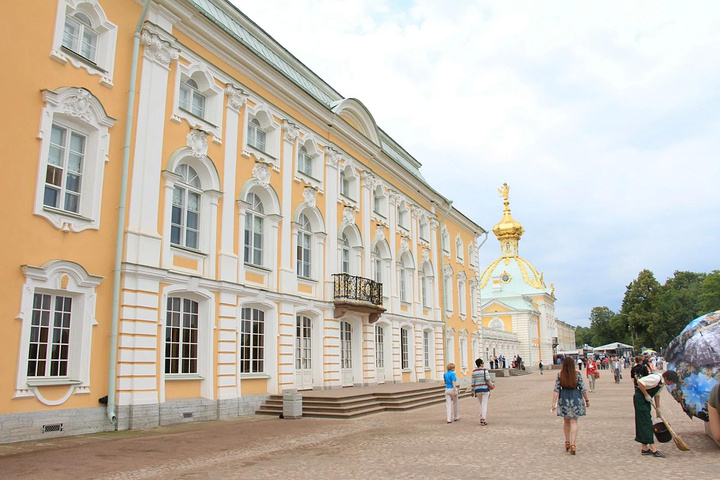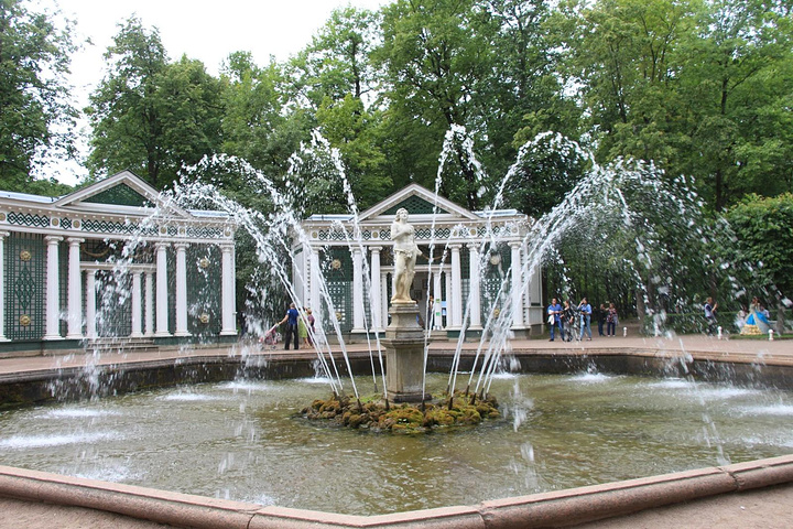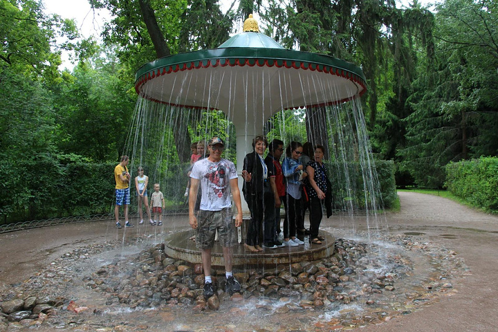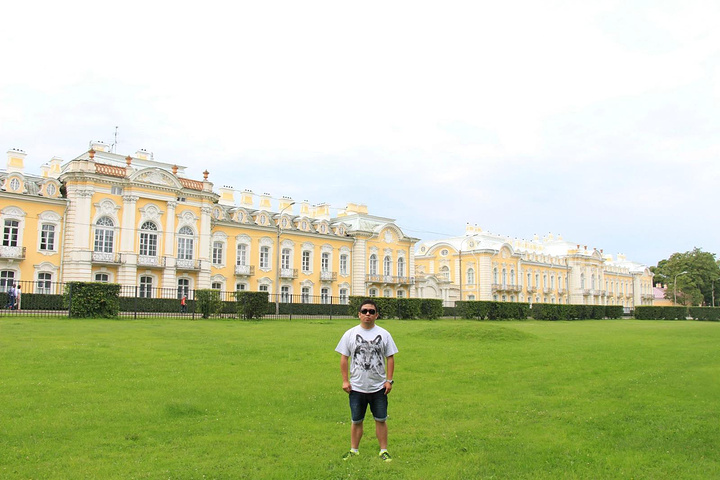 接着来到彼得夏宫,彼得夏宫位于芬兰湾南岸的森林中,距圣彼得堡市约30公里,占地近千公顷,是历代俄国沙皇的郊外离宫。夏宫是圣彼得堡的早期建筑。18世纪初,俄国沙皇彼得大帝下令兴建夏宫,其外貌简朴庄重,内部装饰华贵。当时的许多大型舞会、宫廷庆典等活动都在这里举行,彼得大帝生前每年必来此度夏。1934年以后,夏宫辟为民俗史博物馆。如今,夏宫已成为包括18世纪和19世纪宫殿花园的建筑群,由于它的建筑豪华壮丽,夏宫因而被人们誉为"俄罗斯的凡尔赛"。夏宫的主要代表性建筑是一座双层楼的宫殿,当年彼得大帝住在一楼,他的妻子叶卡捷琳娜一世(彼得大帝的第二个妻子)住在二楼,楼上装饰极为华丽,舞厅的圆柱之间,都以威尼斯的镜子作装饰。
