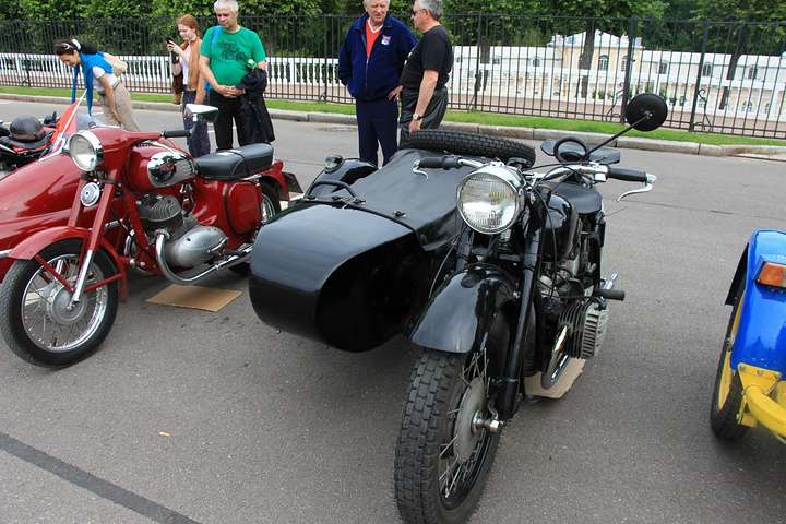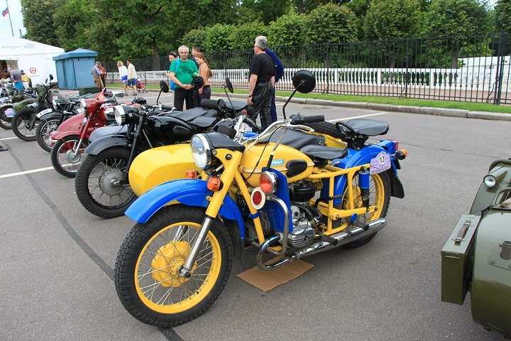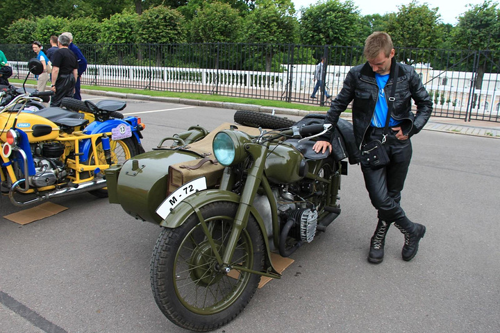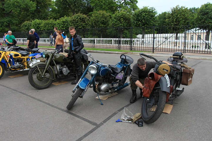 夏宫门口停着很多古董摩托车,可能是俱乐部搞什么活动。
