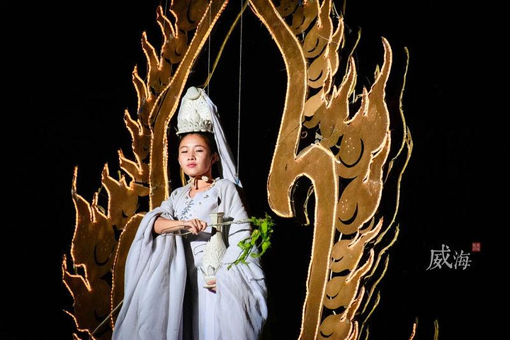 《神游华夏》是世界首部360°全方位山水实景演出。投资3个多亿,由著名导演赵安执导。演出展现的是华夏五千年文明的精髓,有神话,有民俗,有日常生活,有刀光快马,以点带面,展现了中华文化的悠远、丰富、包容。观众席在一条能够转动、进退的大船上,演出结束,正好转360°。演出共分为开天辟地、寻祖溯源、世外桃源、烽火惊涛、九州风情、古道侠影、太平盛世七个篇章,气势宏大,布景巧妙,道具真实,真牛、真羊、真狗、真马,加上玄幻的灯光,让人叹为观止!给你至高无上的尊贵体验。 【地址】:山东威海市华夏路1号 【门票】:神游华夏演艺贵宾票:¥188;神游华夏演艺白金贵宾票:¥288;神游华夏演艺钻石贵宾票:¥388。 【电话】: 0631-5998999 【开放时间】: 7:10-21:00(航行时间随季节性有所调整,以调整时间为准!) 免票说明: 除1.2米(含1.2米)以下儿童免票,无其他优惠 【感受】:一场气势磅礴的演艺,回味中国上下五千年,震撼,背景真正的山和水,带你走进神游华夏。 【交通】: 市内乘49,50路公交线路可直达景区 ;从威海火车站乘出租车约10元即可到达乘15,16路车至海港下车 【温馨提示】:大型演艺360度旋转行走式大型山水实景演艺,还有互动哦,观看表演请勿大声喧哗,19:40开演(检票时间18:30-19:20)至少要提前半个小时到哦。禁止带包入场,请存于指定地点(5元/次,贵重物品请勿寄存);会有水艺表演,前排游客记得做好防护措施,不要湿身啦。