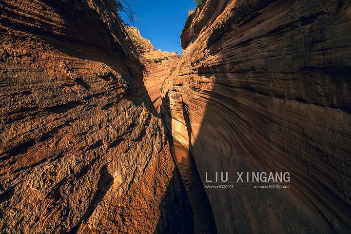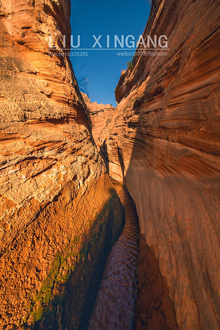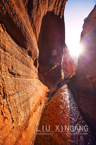 这里是波浪谷最狭窄的地段了一个仅仅能容纳一人通过的水中小峡谷。