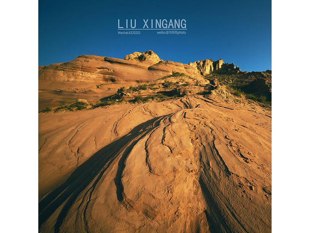 太阳出来后整个波浪谷的色彩陡然发生了变化,实际上是相机的色温在阳光下雨在阴影处是不一样造成的。