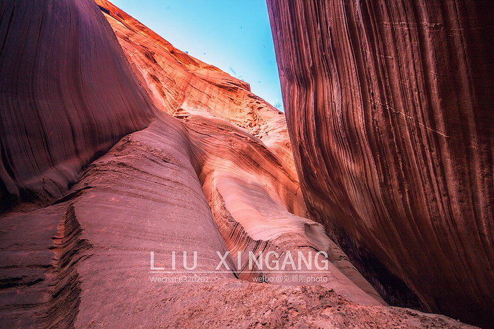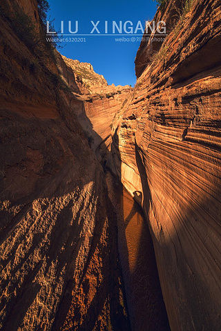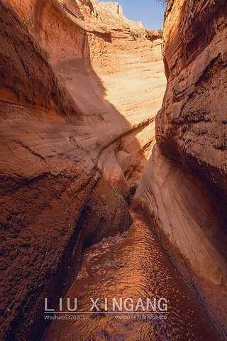 当我走出水中峡谷的时候,景区已经陆陆续续来了旅行团。他们在山谷里叫嚣着,赞叹着这里的壮观美丽,他们有的翻过栅栏,有的坐在脆弱的砂岩上,有的甚至在上面跳来跳去;小孩们四处打滚,爬树,尖叫。他们兴奋的合影,每换一拨人,石头上都簌簌的掉下一层沙。也许,过不了多久,这里层层叠叠的砂石就要被磨圆了,或者这里只剩一片红沙滩。