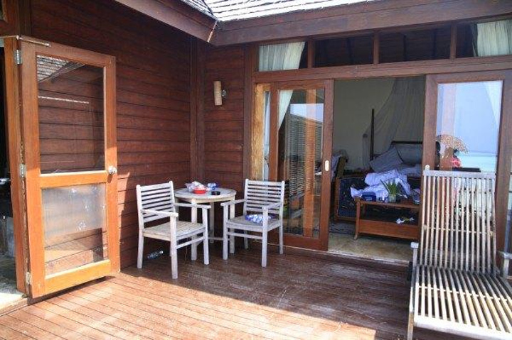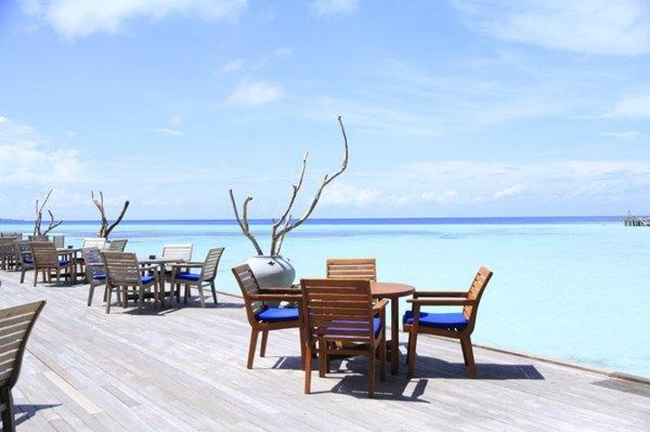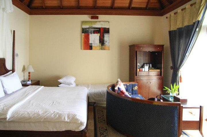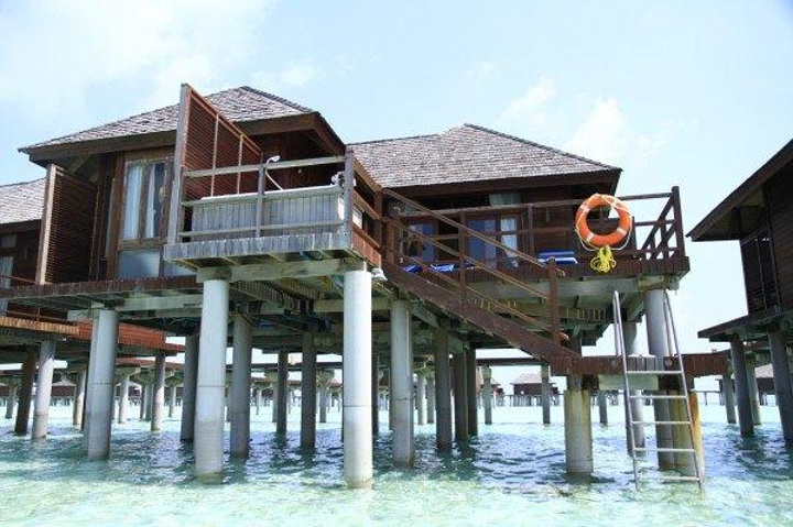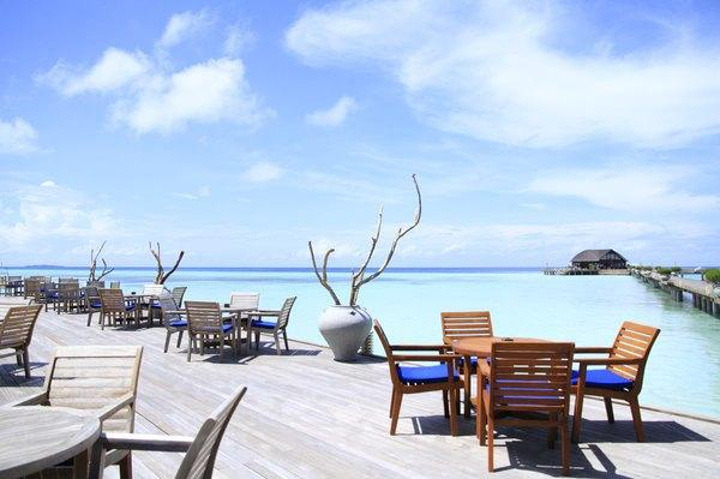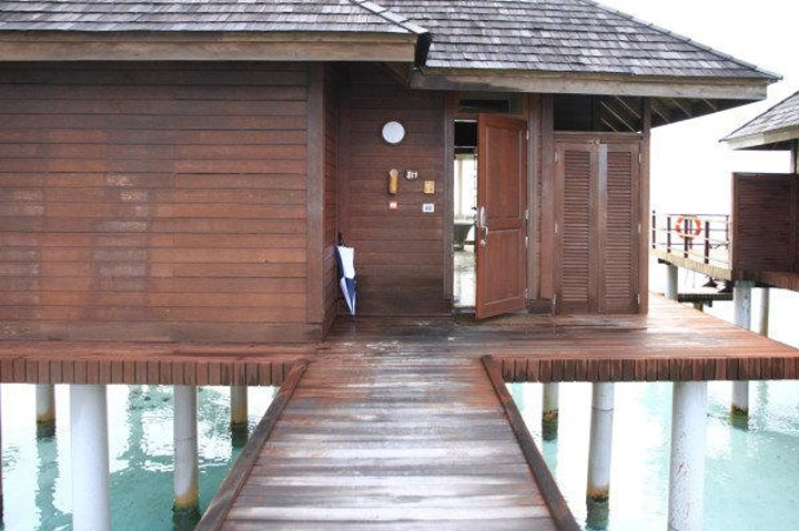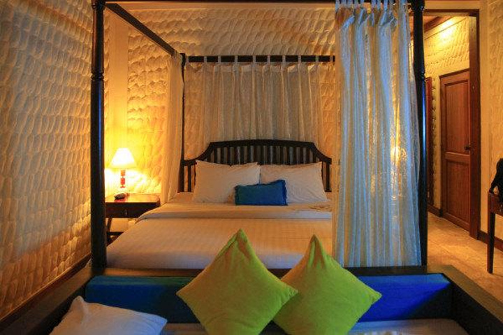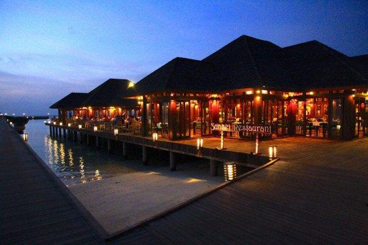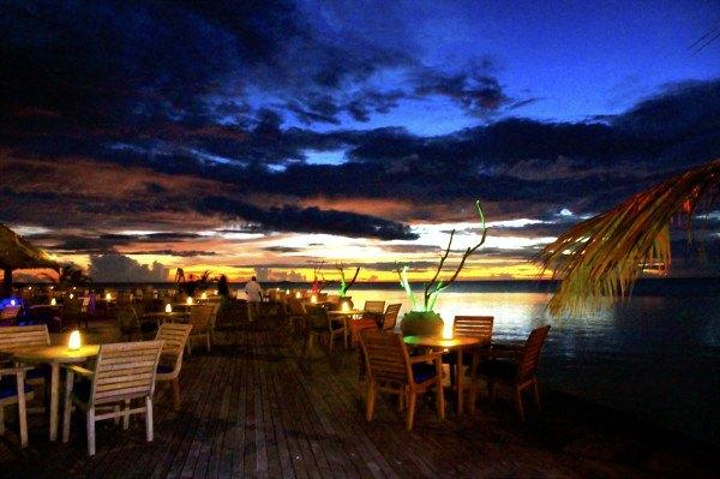 岛上的热带雨林很漂亮,我们选的是双鱼岛,是一个非常浪漫温馨的小岛,这个岛比较适合情侣,不过也有很多家庭出游啦,而且岛上有中文向导,中国人还是比较多的。因为岛的形状像双鱼,因此得名,最大的亮点是他的白沙滩,砂质很细腻,色泽很饱满,是个非常小清新的岛屿。 我们住的沙屋,一栋楼有四间房,我们住的楼上右边的一间,其实面积不算大,应该30平左右,跟普通酒店的感觉差不多,只是这是修在沙滩上的而已。双鱼岛的沙屋分为两种,一种是独栋的,一种是联排的,我们住的联排的,一栋4户,比独栋的费用便宜了3000,两晚下来,就是沙屋联排的一间房要比独栋的沙屋一晚上便宜1500. 日落后回来,早上的日落酒吧真是美爆了,单反光圈不够大,真的完全拍不出他的美,这样亲临自然的餐厅酒吧才是真正的观景餐厅,没有任何玻璃窗的隔阂,非常震撼。