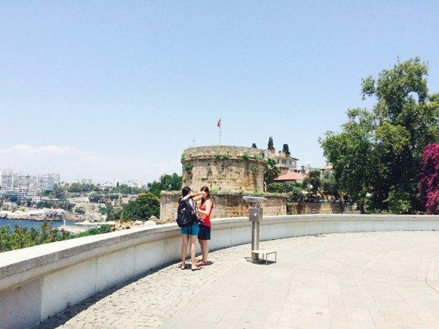 吃过饭之后,我们开始闲逛,闲逛,这里的节奏很慢,一步两步,一步两步,是魔鬼的步伐,摩擦摩擦,哈哈哈哈 老城区出来,就是安塔利亚的Karaalioglu公园,关于这个公园,确实很美,之前想找怎么达到的方式,也没有找到,我们按照旅店老板的指示,从酒店出门十分钟的样子,就走过了,第一天来的时候,是晴天,很晒,但是海风很温柔,人很少,看见一两只人在树荫下晒太阳,或者草坪上窃窃私语的情侣,觉得人少就是好