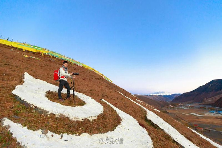 每年秋季的新都桥都吸引众多游客前往,这里是“摄影家的天堂,金黄的柏杨,弯弯的小溪,十里长廊,拍照时一定要注意来往的车辆,也要把握时时间与光影,最佳的摄影时间是在傍晚四五点的时候,这时光影最棒了。 上新都桥拍日照金山的观景台一般当地人都不让你上去,就是要乘坐他们的马匹才让你进去,一般他们开价都是100元一个人,你可以跟他谈谈,我和花两个人,100元,到半山腰时他们让你在那里拍照,然后下山的时候再打电话给他,他会来接你,如果你体力充足的话就爬上山顶,花了半个终于爬上山顶,站在高处看风景就是不一样。