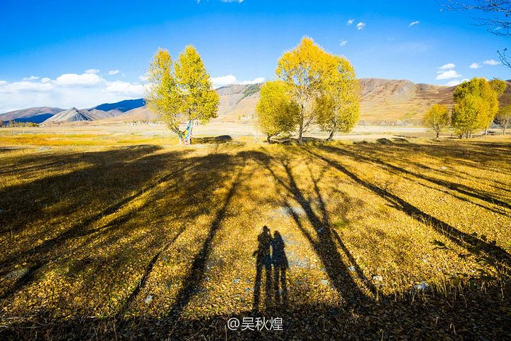 骑着马儿无拘无束走在金黄的柏杨小道上,爬上了不远处的小山坡,想在这里静静等待日落,等待日照金山。