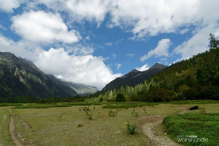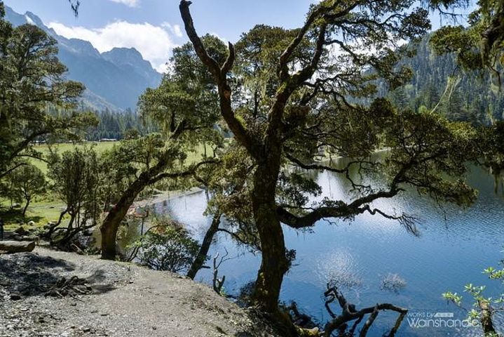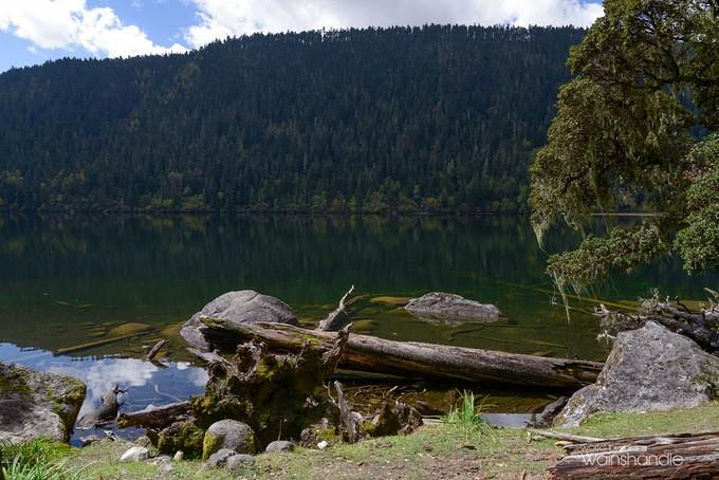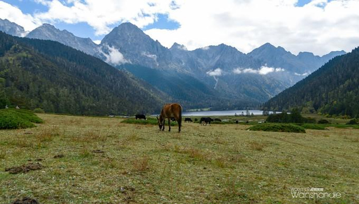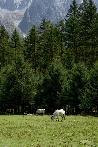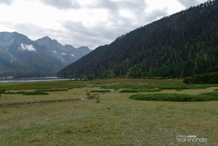 走出森林没多久,伍须海连同大片大片的草原便映在眼前。伍须海其实相比之下没有莲花湖漂亮,也没有天池壮观,不过这大片草原我还是非常喜欢,如果是在春季,应该也是一片花海。