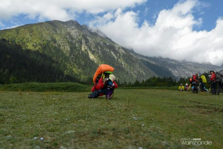 朋友队伍的一个队友给我们后面一拨走出森林的队员合影,姿势还是挺敬业的