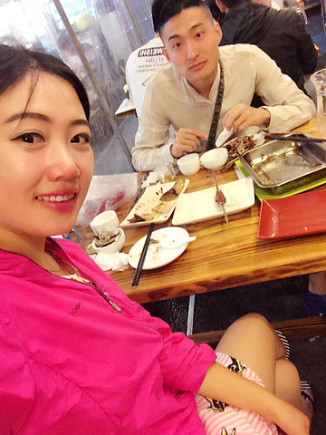 据说青岛当地人并不会在啤酒街吃饭喝酒,而去去台东利群小吃街,吃大排档,和扎啤。据说啤酒都是当天做当天喝,沫越多越新鲜。我们俩从啤酒街按照百度地图腿到小吃街,期间路过一家麻辣小龙虾,味道太毙了。 我们两个人在瑶瑶海鲜大排档点了一条鱼,一份扇贝,肉筋,板筋,羊肉串,大蒜,大虾,半扎啤酒,两个人吃刚刚好。一共花了96块钱,经济实惠,味道鲜美。