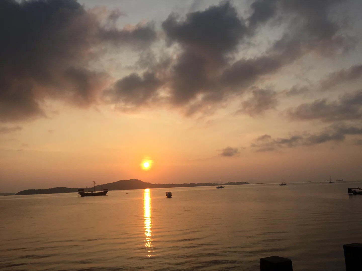 昨天cici没有跟上我们的步伐,一个人误打误撞去到一个老镇码头。于是我们约好今天早起看日出。5点半起床,45分骑车出门,路上的空气很清新,不晒也没有行人和车。舒服~